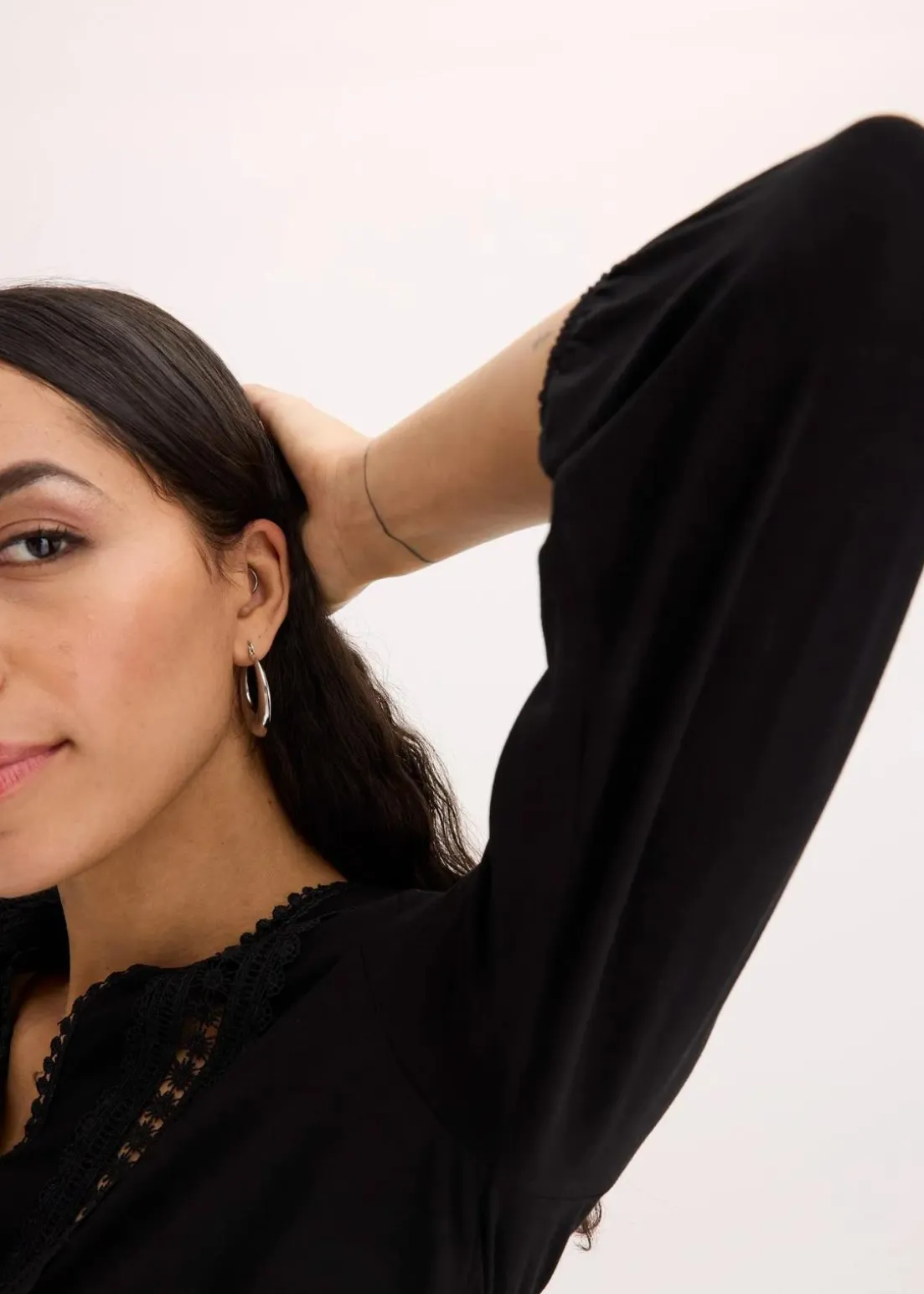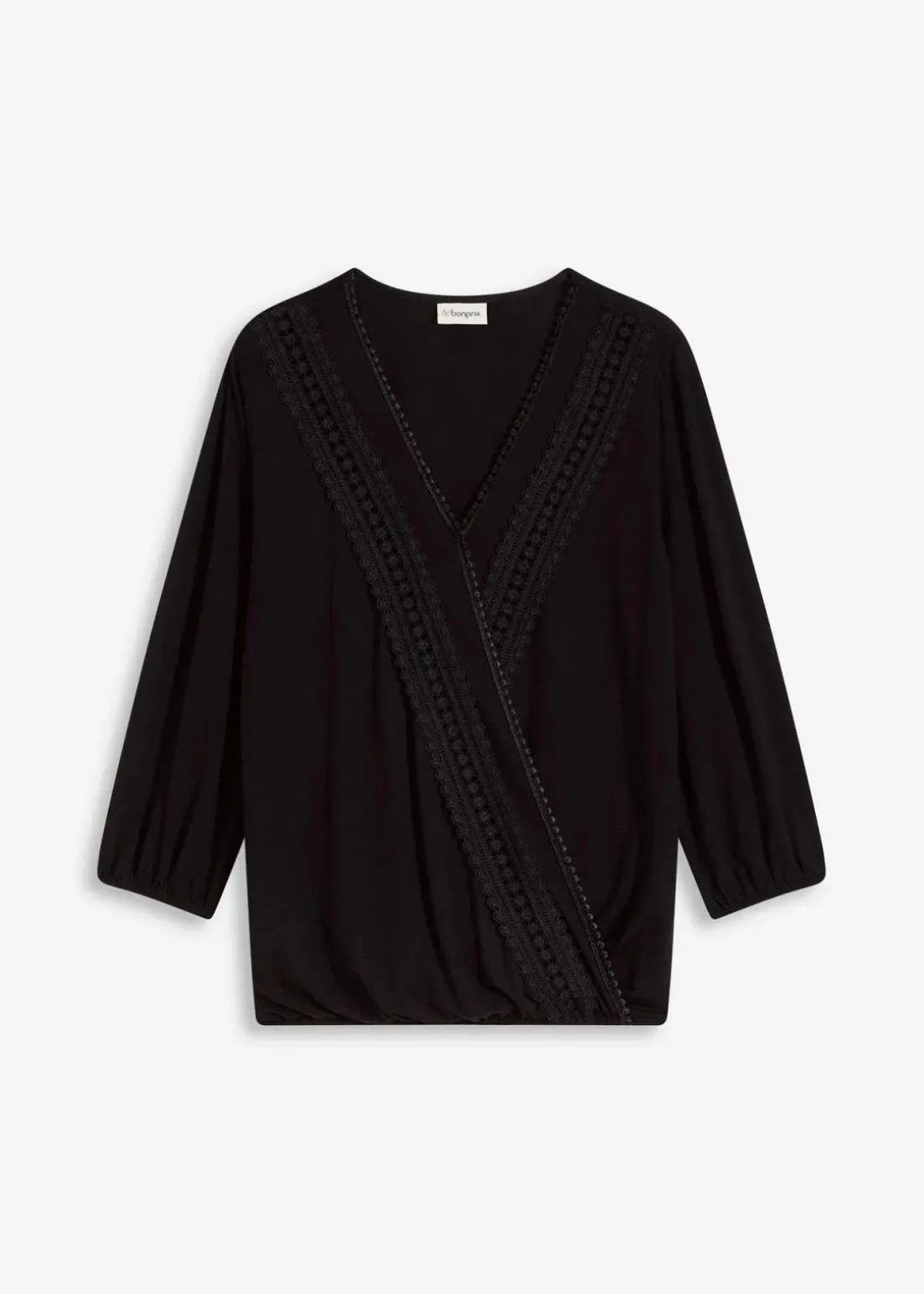 Zeitlose Bluse mit Wickeloptik und hochwertiger Spitze