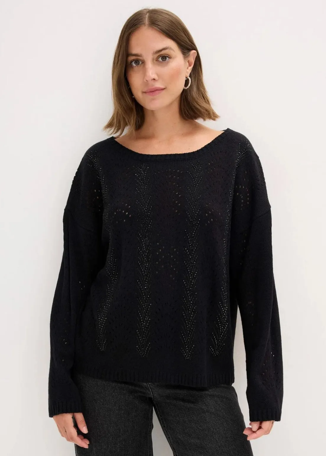 Moderner teilweise transparenter Pullover mit Lochmuster