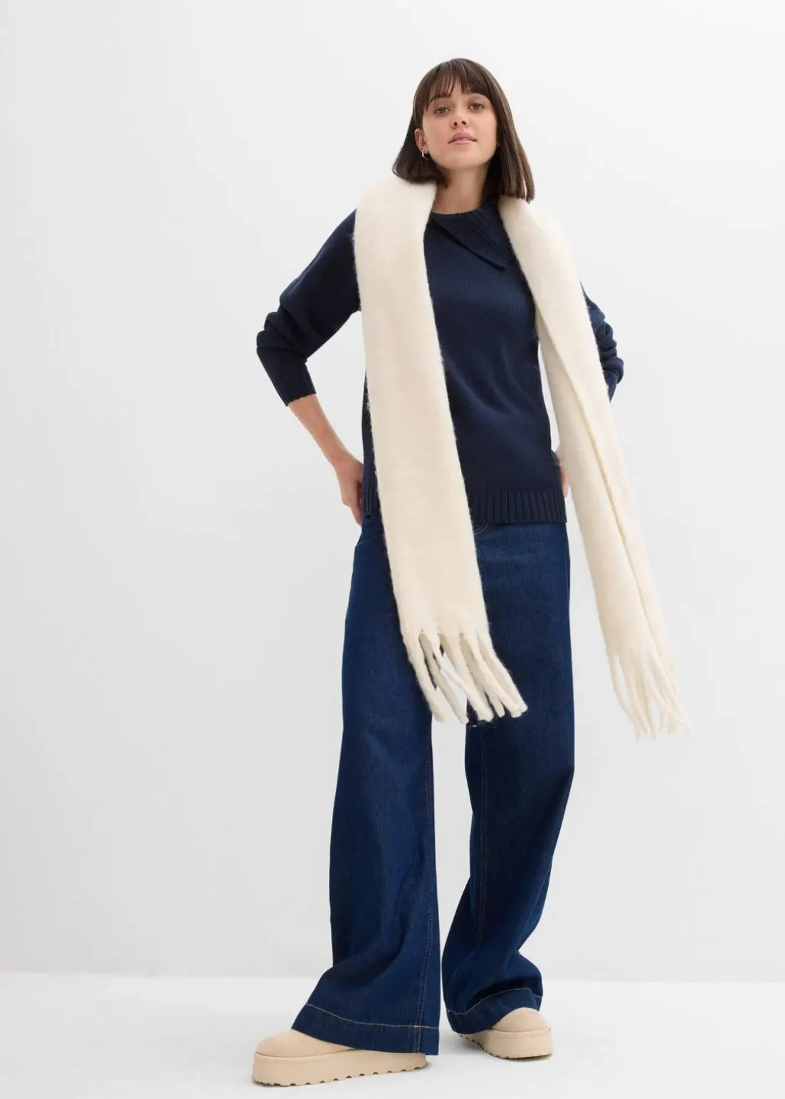 Asymmetrischer Pullover mit modernem Design und schräg verlaufendem, geripptem Kragen