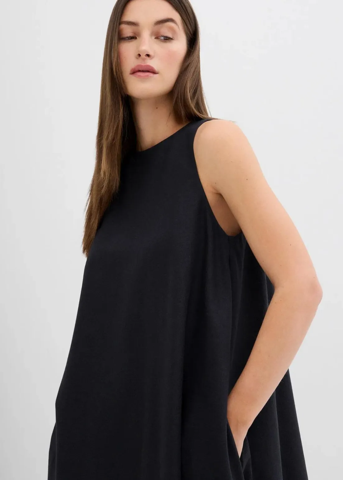 Midikleid in lockerer Passform mit einem elastischen Ausschnitt sowie Seitennahttaschen