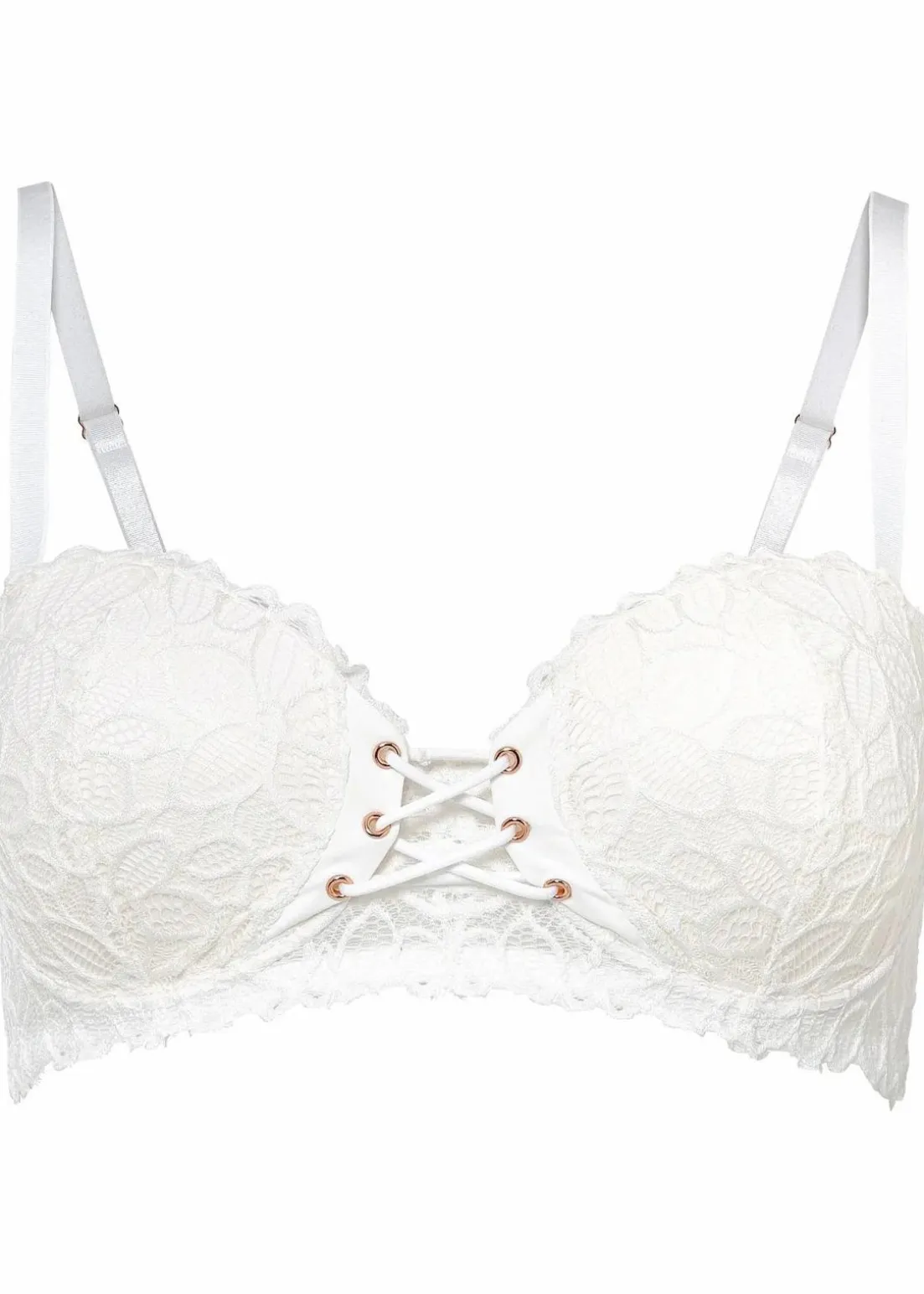 Dieser raffinierte BH begeistert durch das Schnür-Detail am Dekolleté. Die Bänder sind unauffällig fixiert, so ist der optimale Sitz stets gesichert. Die Cups des BHs sind vorgeformt und gepolstert. Darüber hinaus bieten angenehme Formbügel ausreichend Halt.