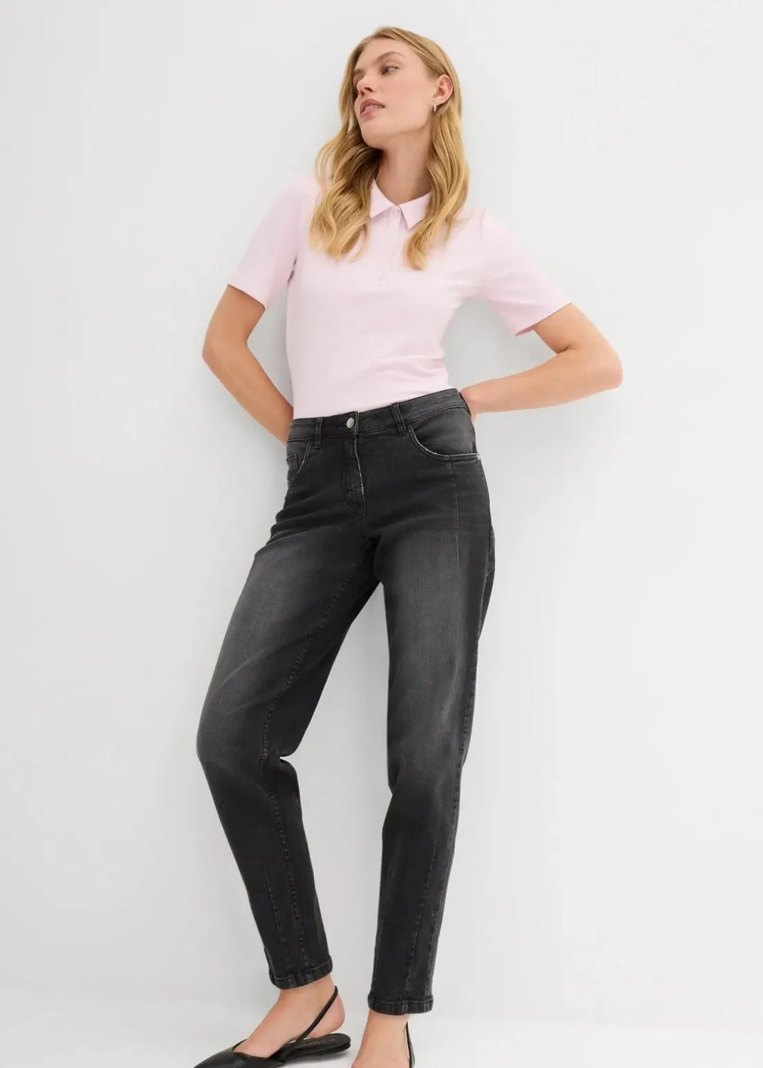 Weite Barrel Jeans mit mittlerem Bund