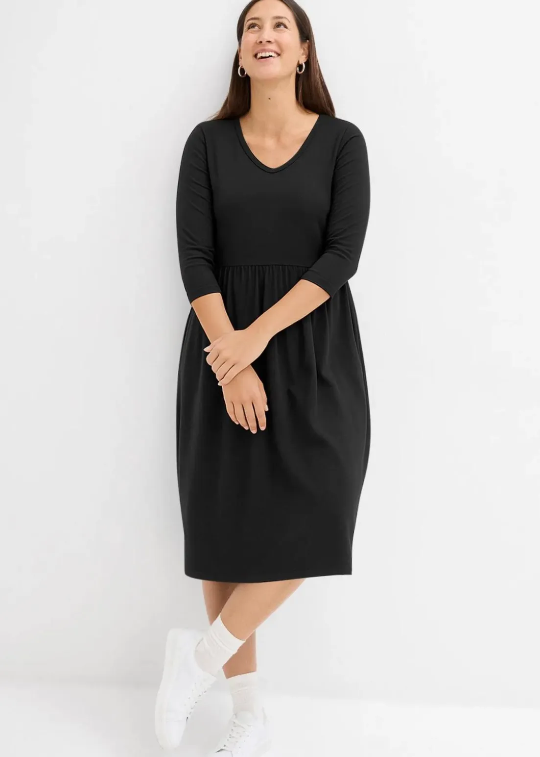 Kniebedeckendes Jerseykleid mit figurumspielendem Schnitt