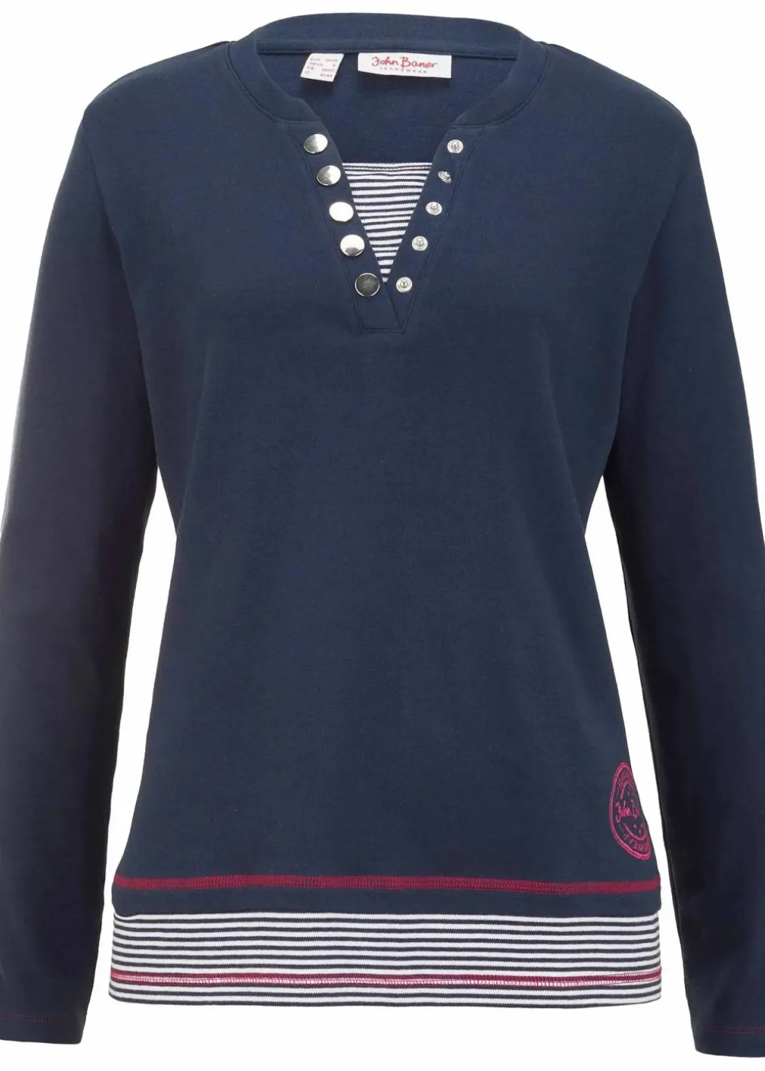 Maritimes Baumwoll-Langarmshirt in 2 in 1-Optik