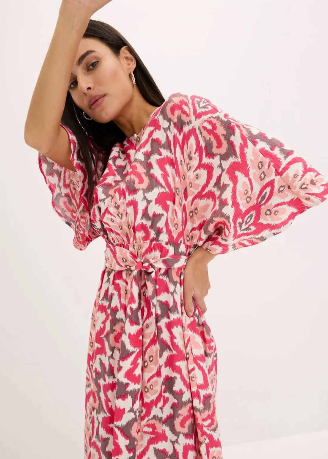 feminines Midikleid mit weiten Ärmeln und floralem Print.