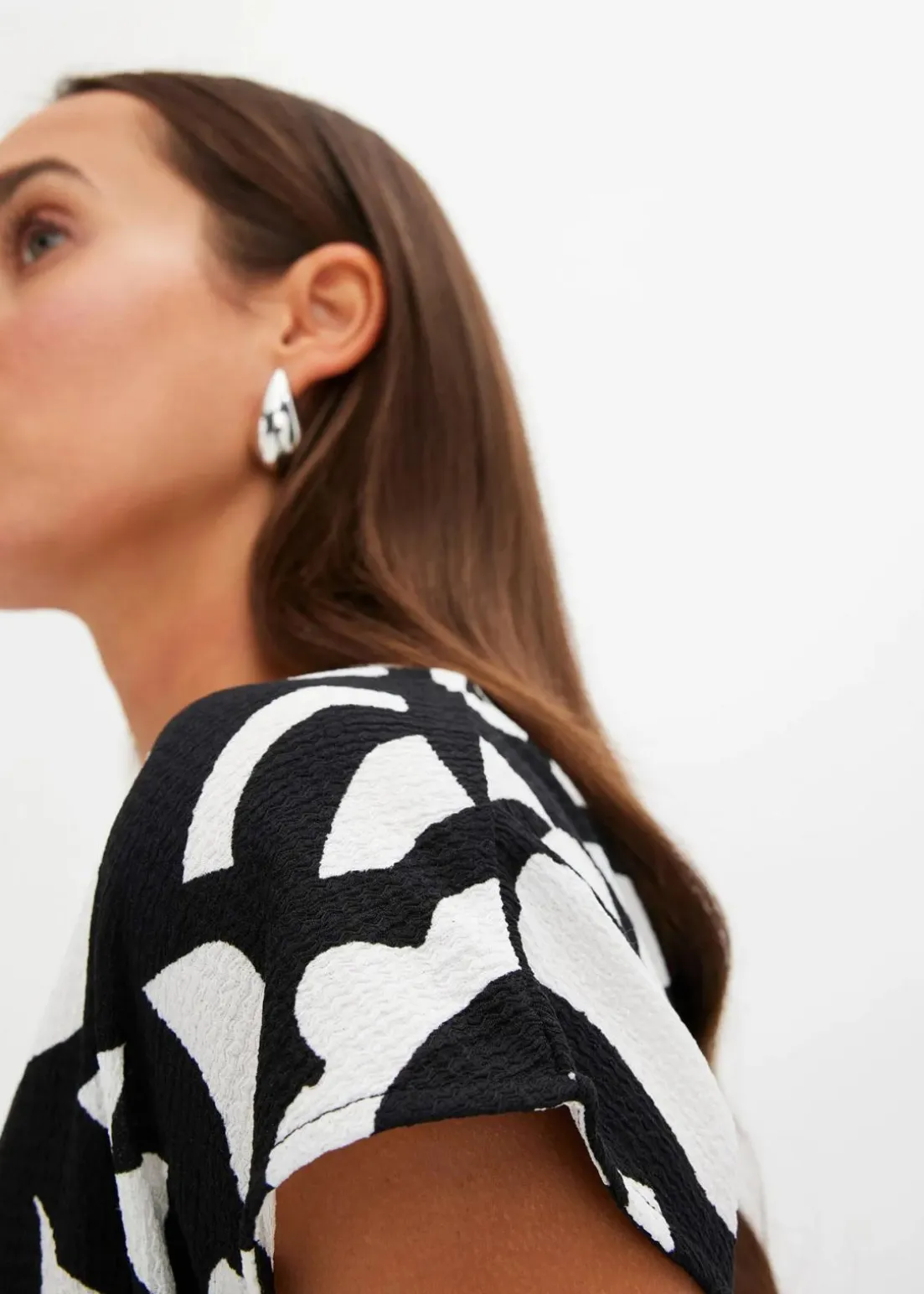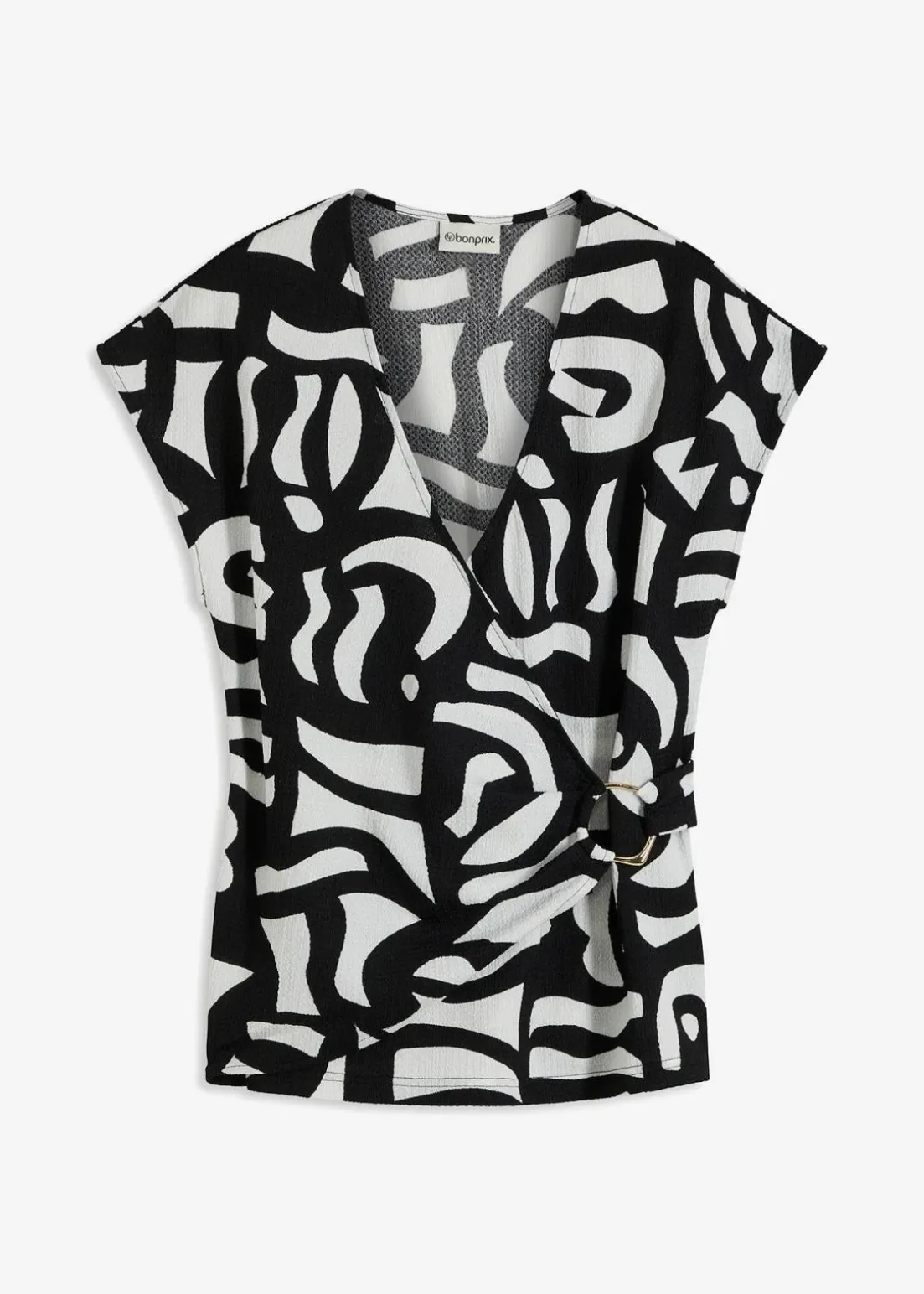 graphisch bedrucktes Shirt mit dekorativem Ring-Detail seitlich an der Taille