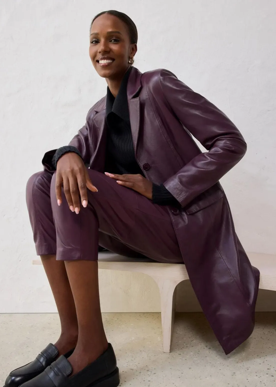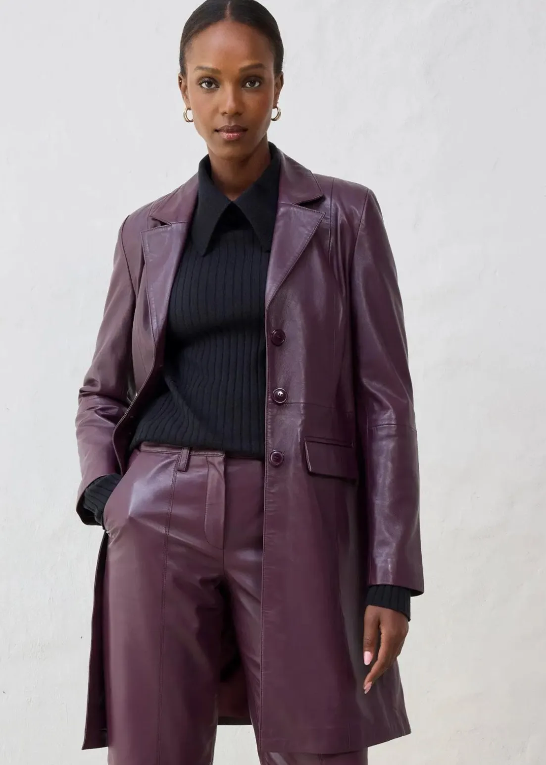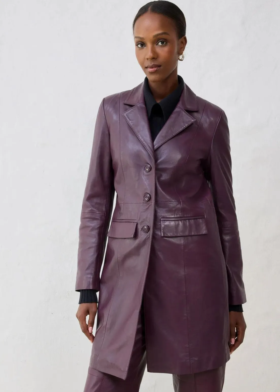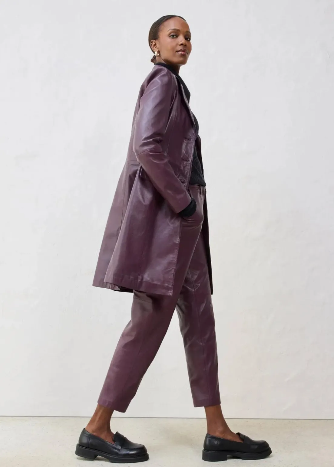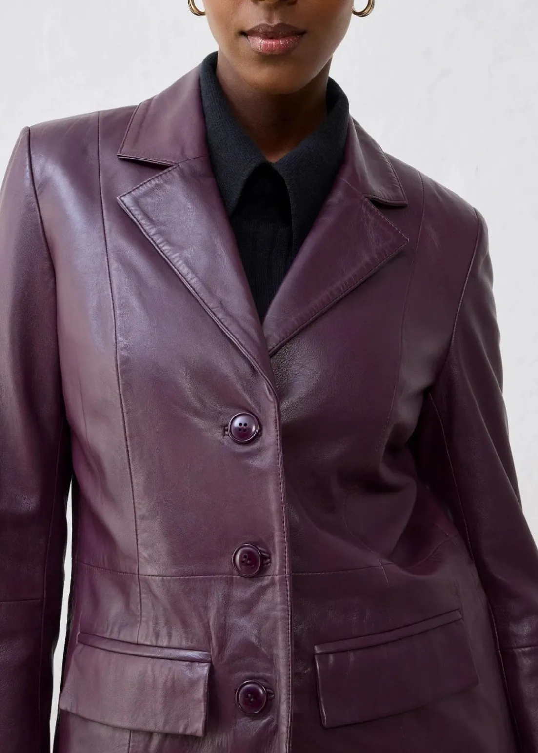 edler Blazermantel aus Leder mit Reverskragen und seitlichen Eingriffstaschen