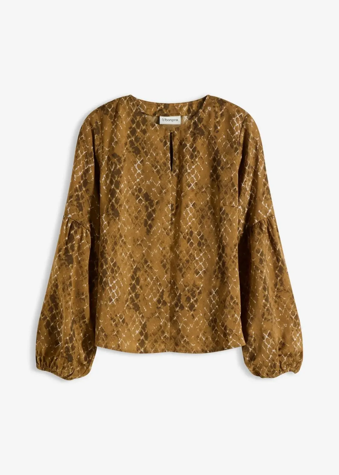 Blusentunika mit schmalem Stehkragen und nach unten weiter werdende Volumenärmel