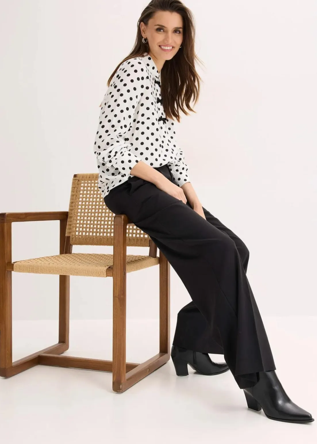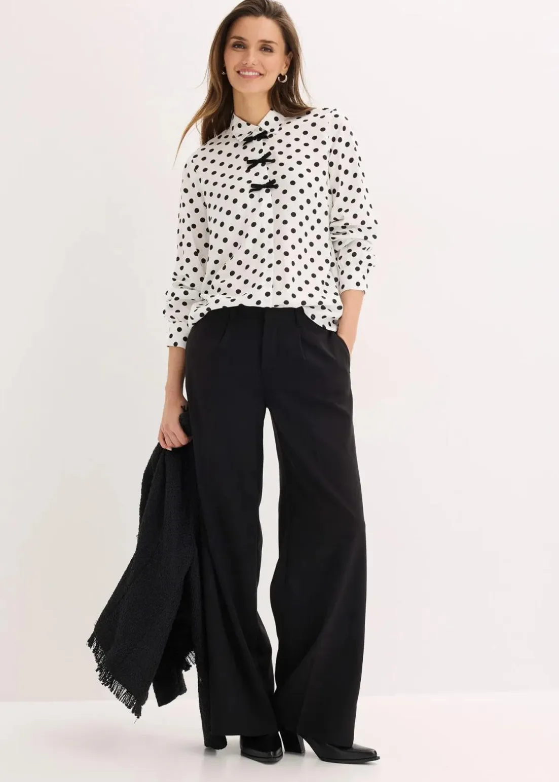 bedruckte Bluse aus fließender Viskose mit dekorativen Schleifen vorne