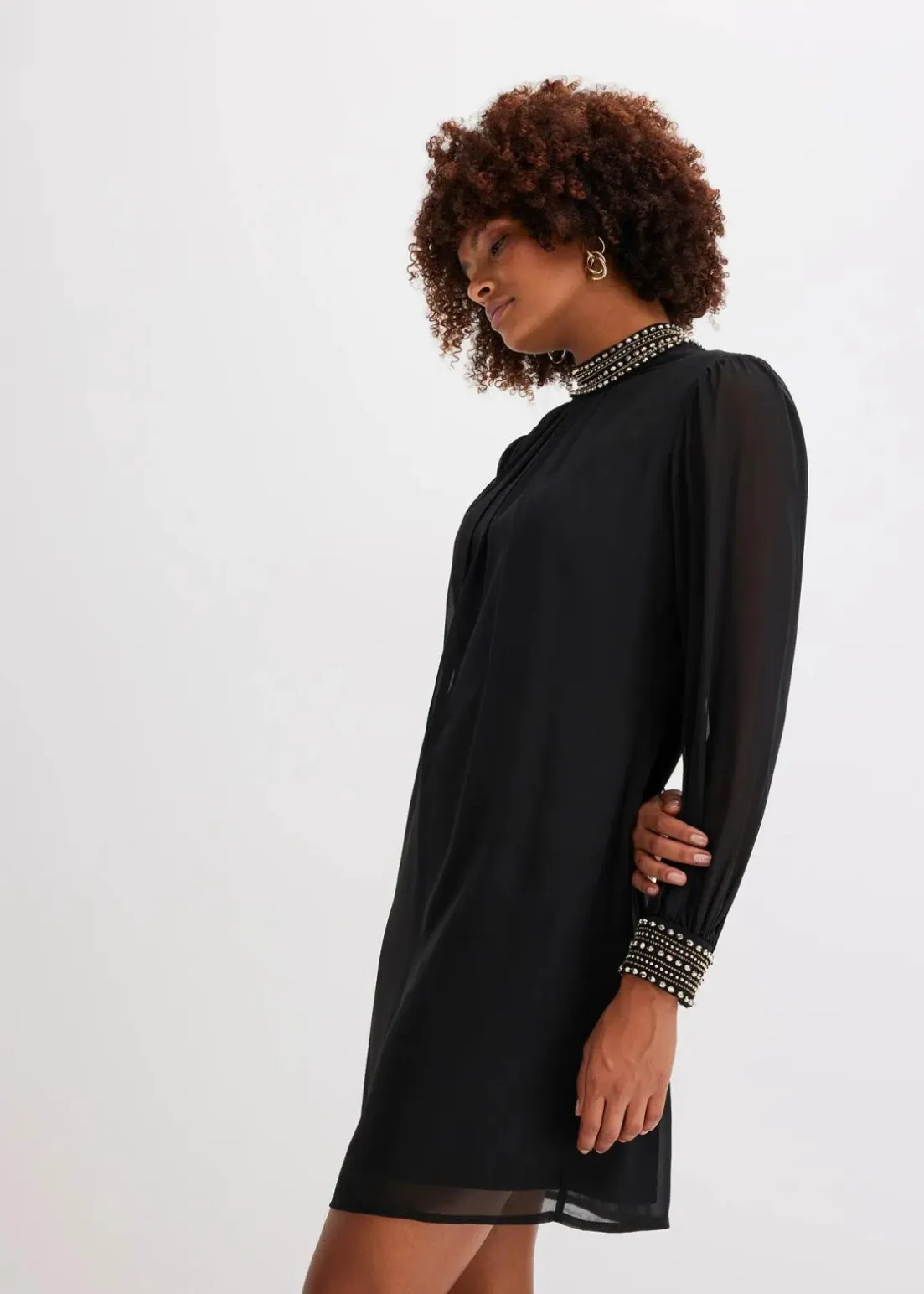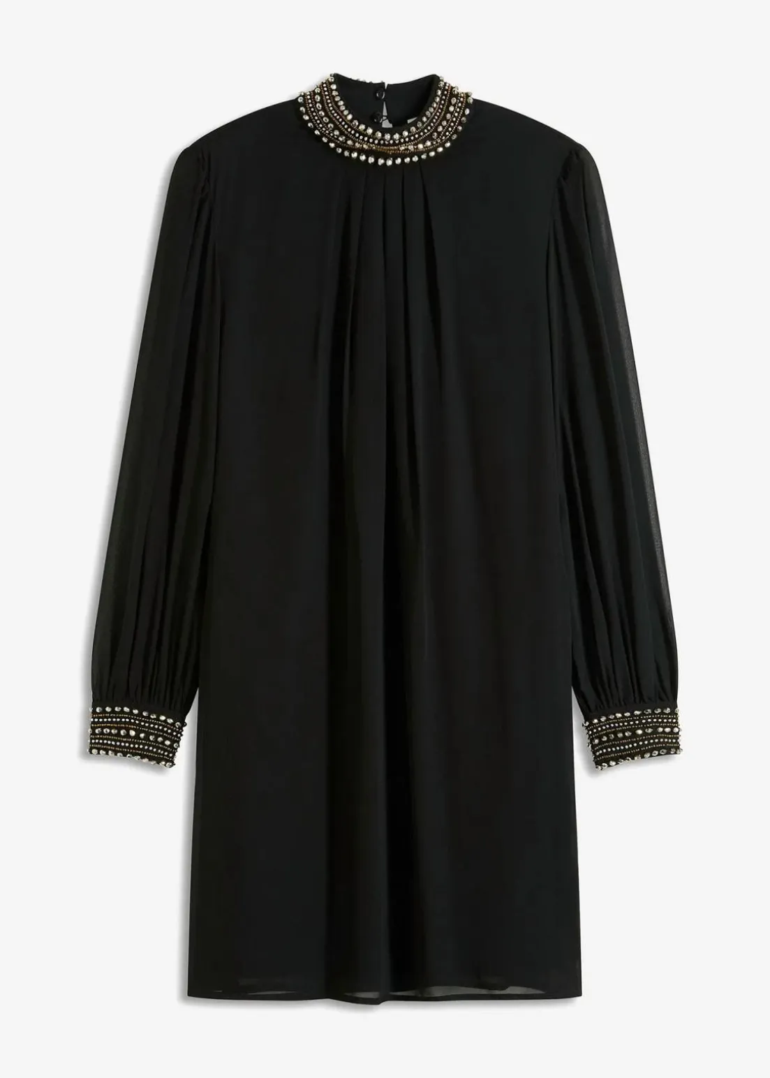 Modern und feminin: Blusenkleid aus leichtem Chiffon mit Perlstickerei am Kragen und Ärmelbündchen
