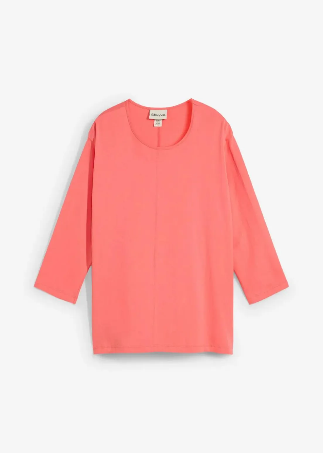 Boxy-Baumwollshirt mit asymmetrischem Saum, ¾ Arm