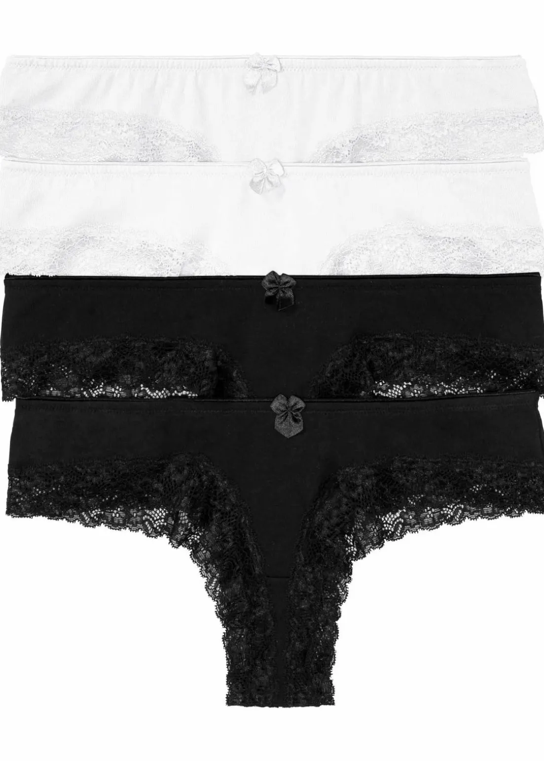 Der knappe Brazil Slip im Viererpack präsentiert sich optisch als Mix aus Panty und String. Dieses Modell überzeugt mit einer hautfreundlichen Baumwollqualität, auch der Zwickel besteht aus Baumwolle. Toller Blickfang ist die breite Spitzenborte entlang der Beinausschnitte. Eine kleine Schleife in der Mitte des elastischen Bundes setzt bei diesem bequemen Brazil Slip aus der bpc Kollektion das i-Tüpfelchen.