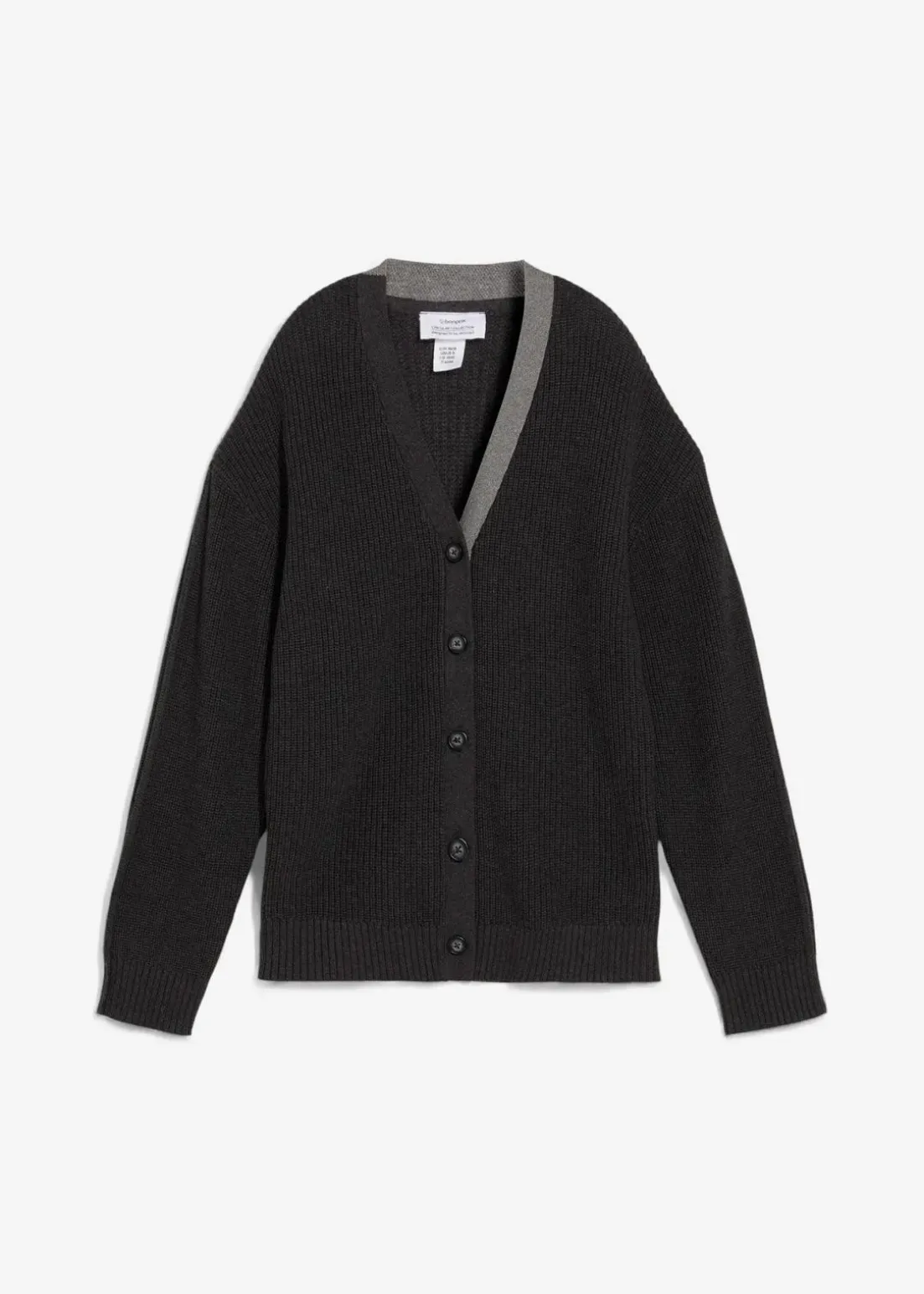 Loose-Fit Cardigan mit V-Ausschnitt sowie kontrastfarbiger Knopfleiste vorne und überschnittenen Schultern