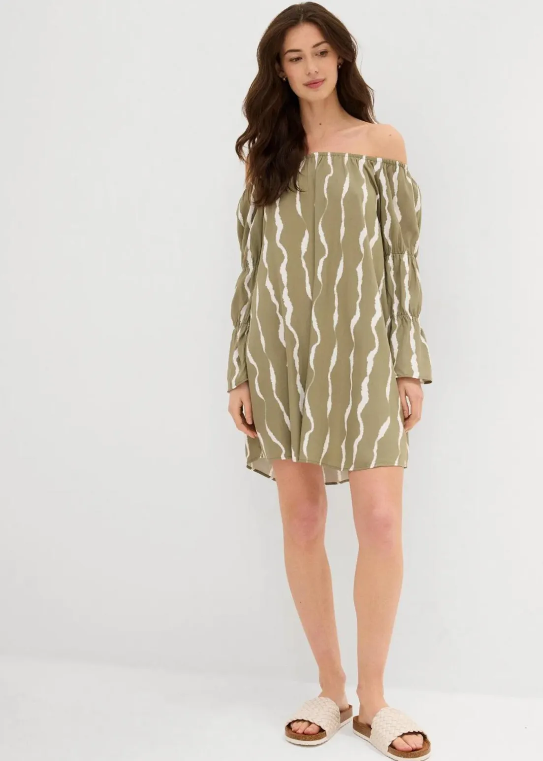 Modisches Carmen-Kleid mit langen Ärmeln