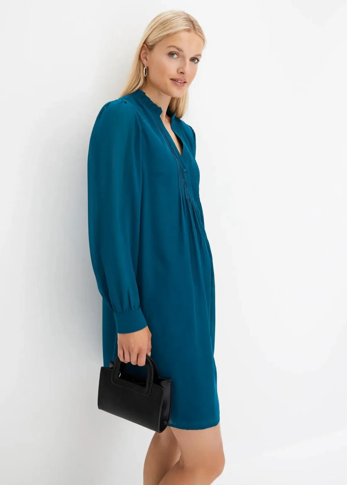 feminines Kleid mit Biesen vorne am Ausschnitt
