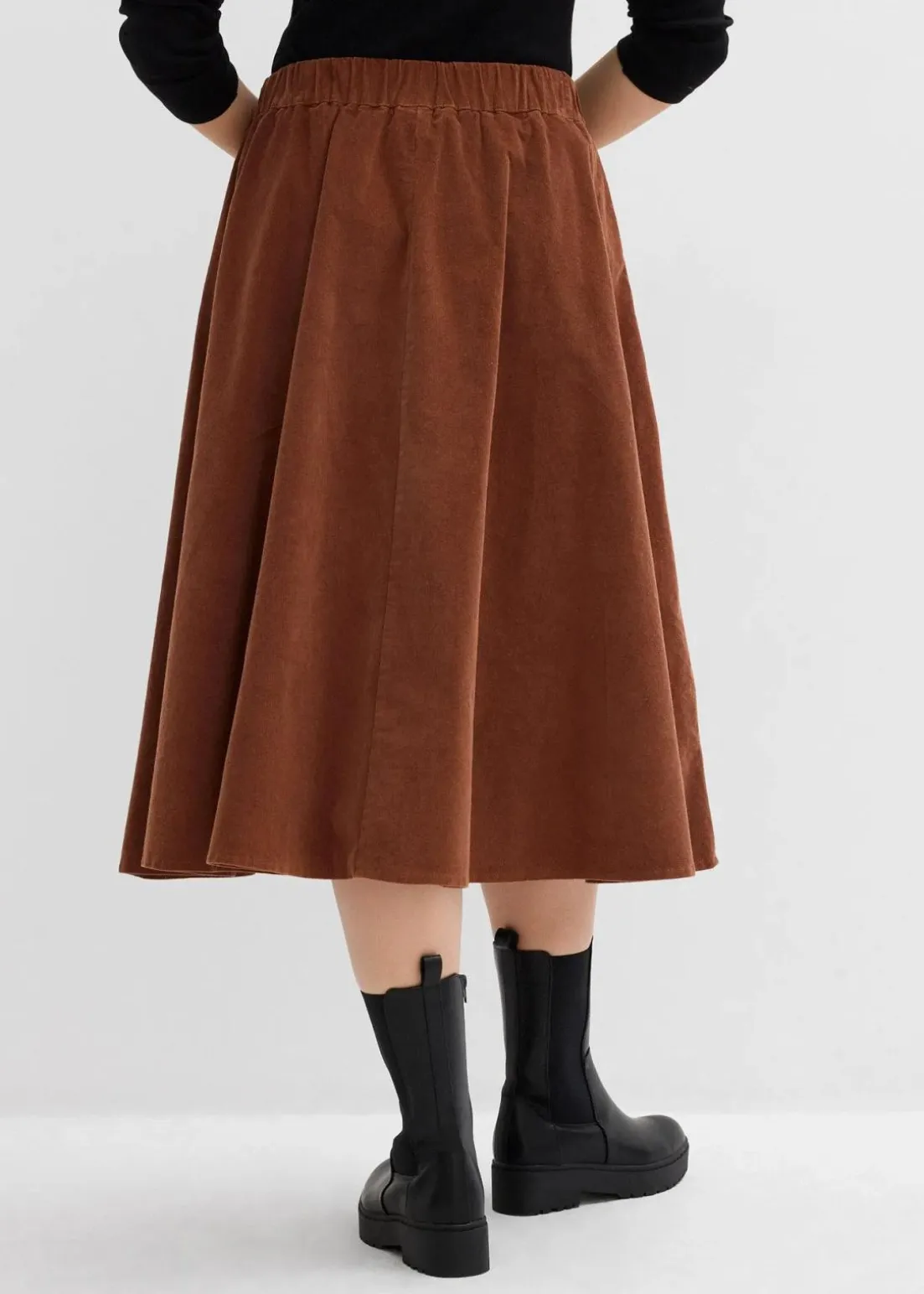 Cordrock mit elastischem Bund und seitlichen Eingriffstaschen.