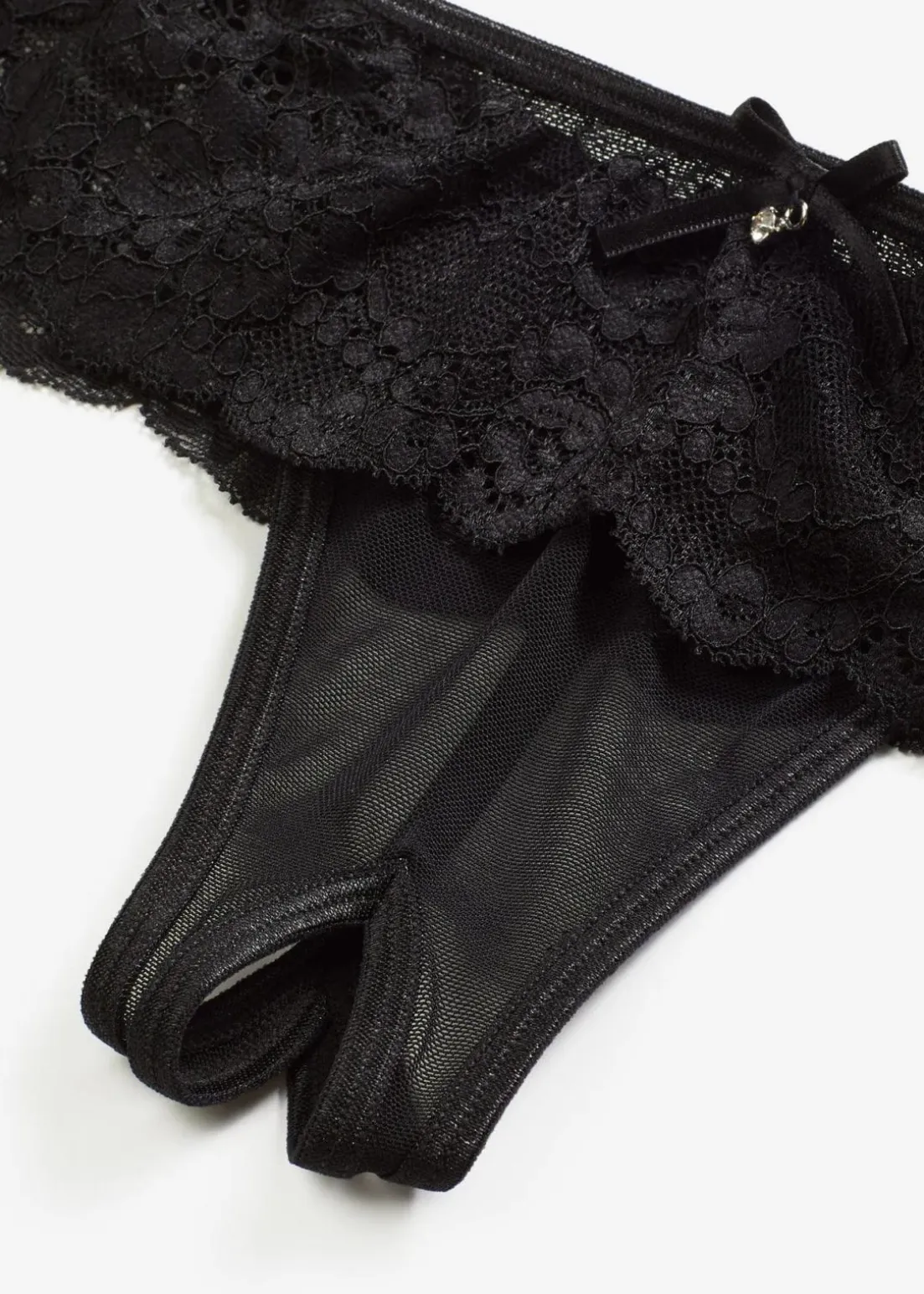 Dieses atemberaubende Set aus Strapstop und String ouvert verzaubert Ihren Gegenüber. Das sexy Esemble begeistert mit eleganter und transparenter Spitze. Das Strapstop schmiegt sich durch seinen elastischen Stoff perfekt Ihren Rundungen an und auch der zweifarbige String ouvert mit verzierender Spitzenkante sorgt für einen echten Hingucker. Abgerundet wir das Set durch einen kleinen Schmuckstein, der den sexy Look noch weiter unterstreicht. Das Strapstop ist nur bis Cup C geeignet.