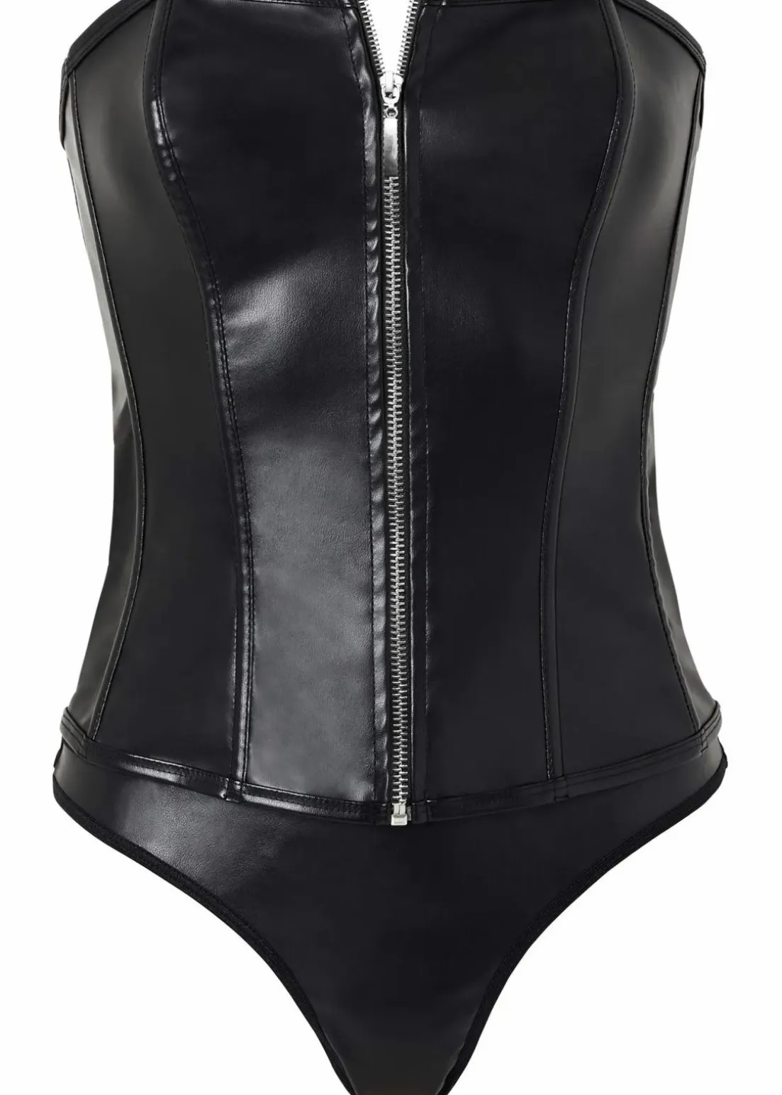 Hot and spicy! In dieser eng anliegenden Corsage sehen Sie einfach rattenscharf aus. Der Reißverschluss vorne lädt zum Öffnen ein und weckt heiße Phantasien. Das Material ist in Lederoptik gehalten und sehr angenehm zu tragen. Im Rücken kann die Weite anhand einer Schnürung angepasst werden.