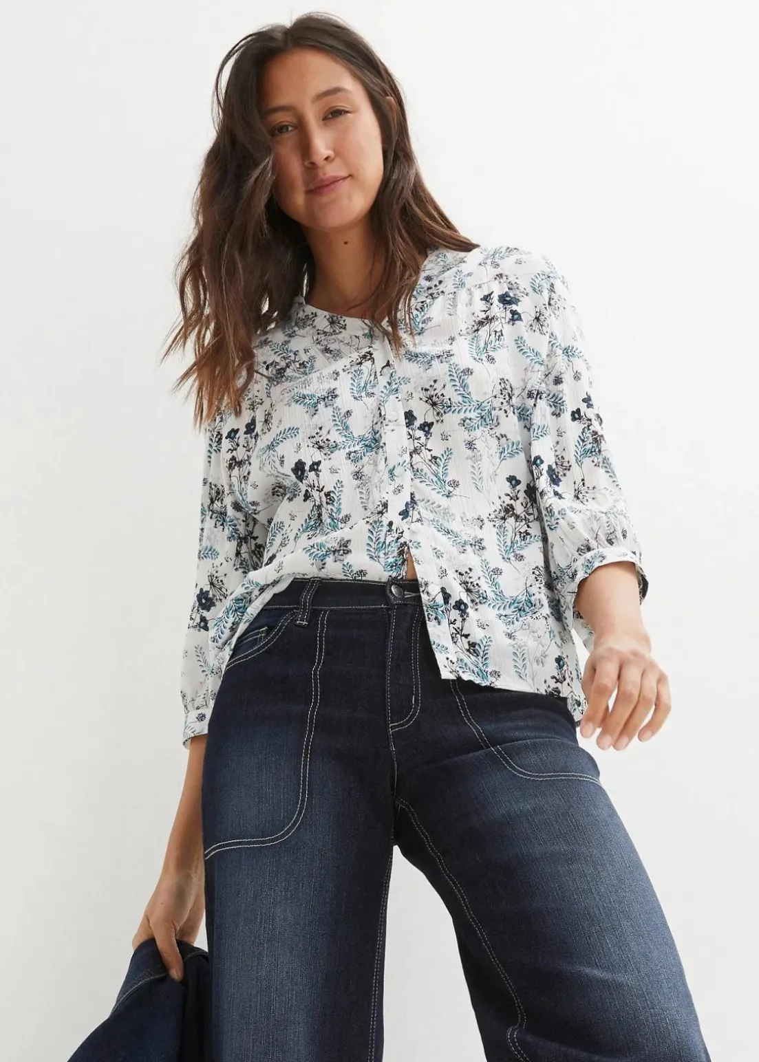 Luftige Crinkle-Bluse mit 3/4-Arm und Turn-Up