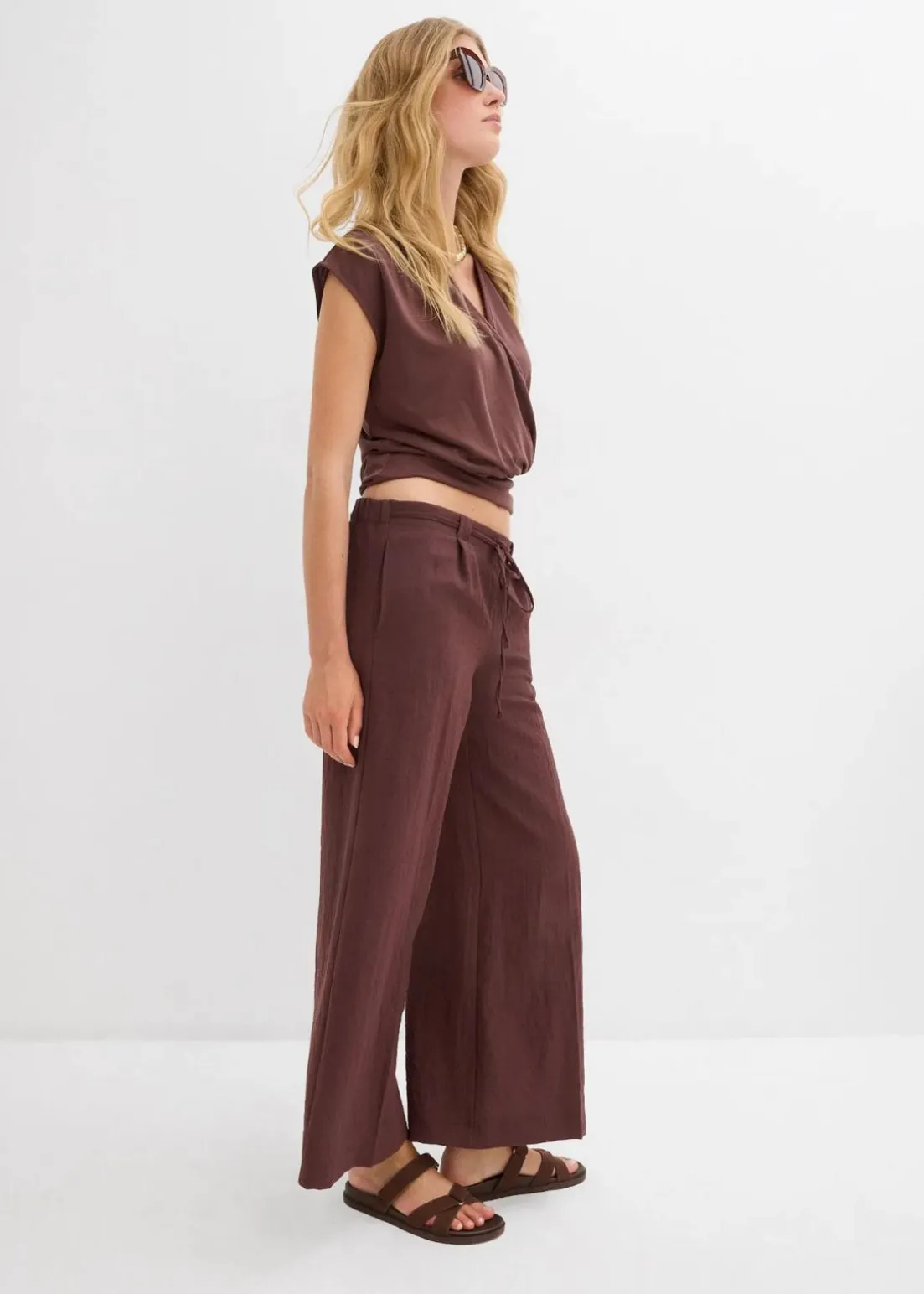 Culotte mit weitem Beinverlauf, verkürzter Länge und seitlichen Eingriffstaschen