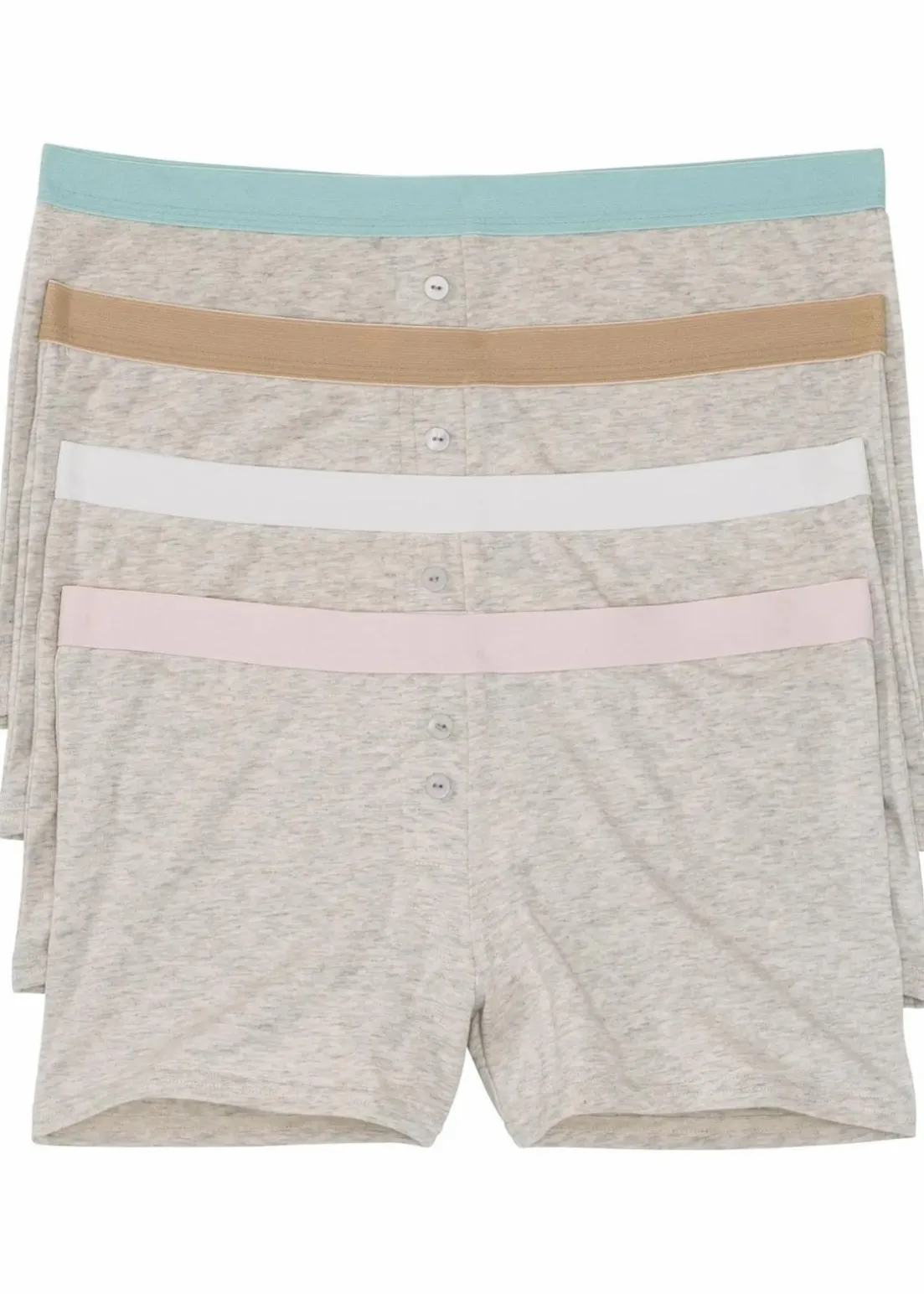 Diese hübsche Damen-Boxer im farblich sortierten Viererpack orientiert sich an der Variante für Herren. Unterhalb des elastischen Bundes setzt eine von farbigen Nähten umrahmte Fake-Knopfleiste an. Ein weiterer Blickfang ist der kontrastfarbene Bund.Neben ihrer besonderen Optik überzeugt die Damen-Boxer aus der bpc Kollektion mit einer körpernahen Passform und viel Tragekomfort dank des angenehmen Materials. Der Zwickel besteht aus Baumwolle.
