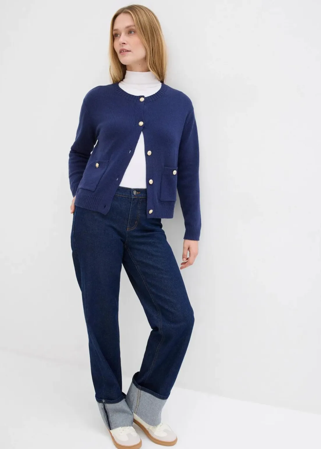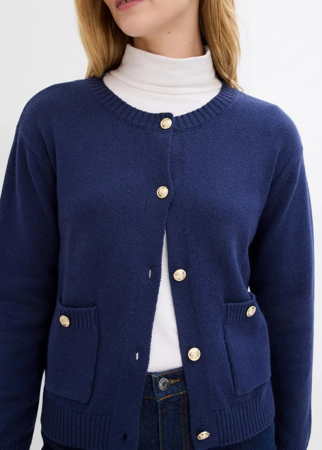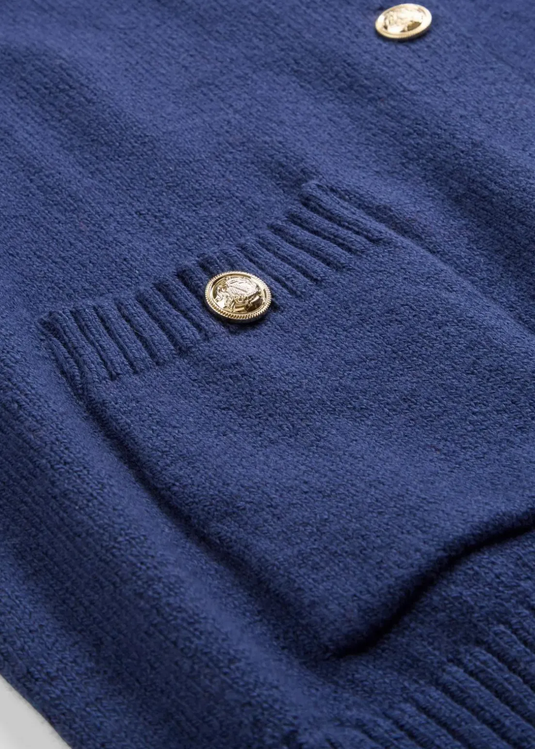 Strickjacke mit Goldknöpfen und Taschen