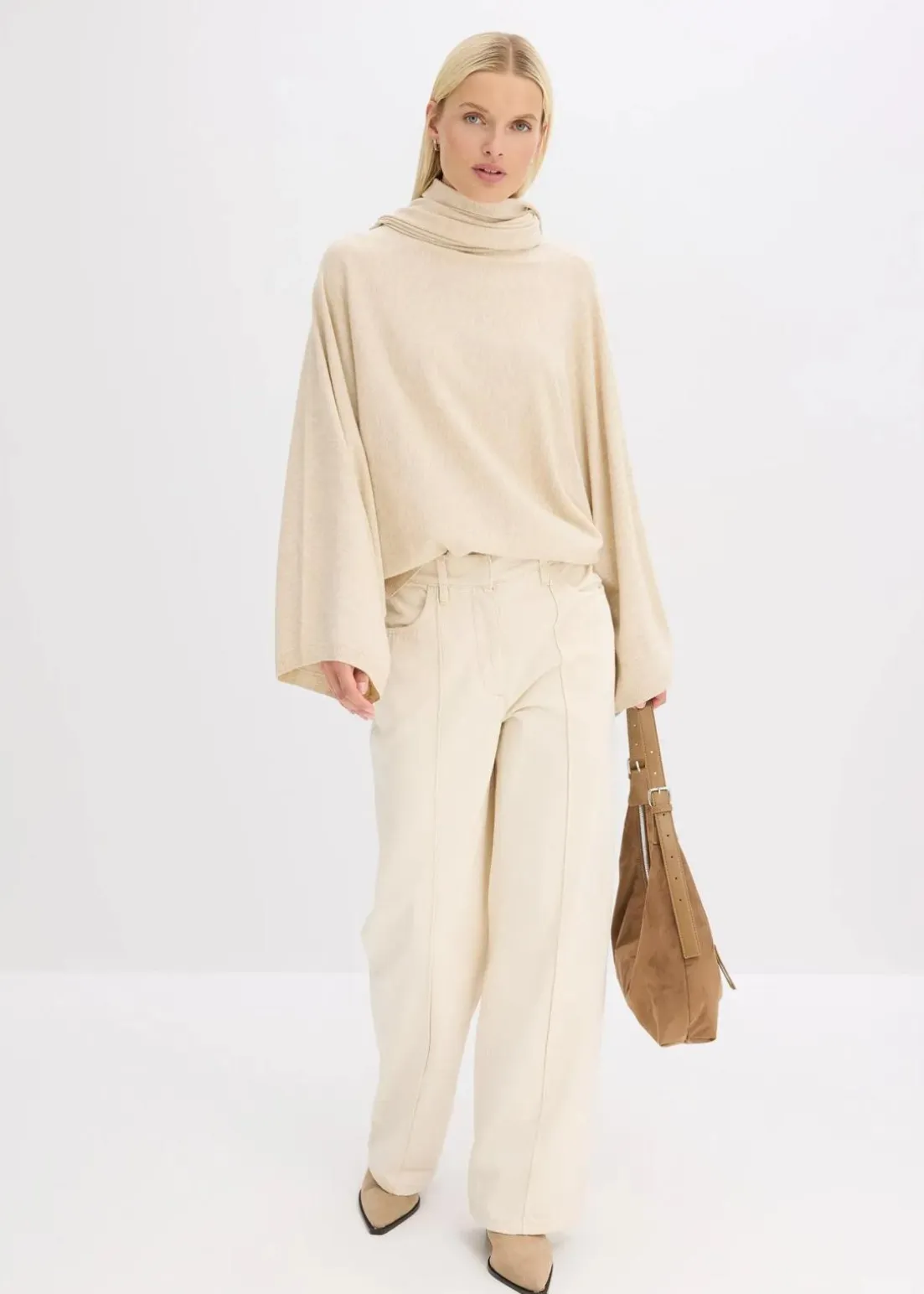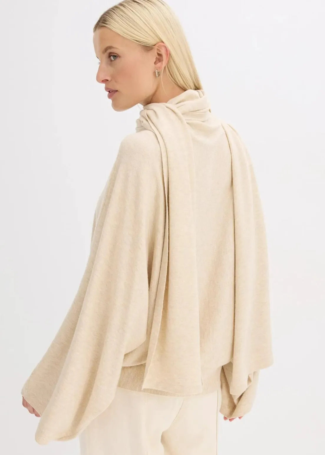 Weit geschnittener Pullover mit weiten Ärmeln und Schaldetail