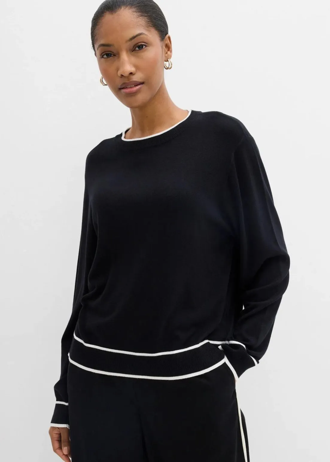 Strickpullover mit kontrastierenden Bündchen