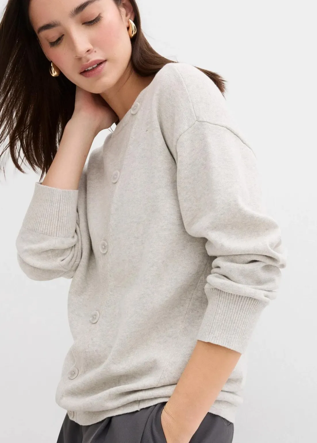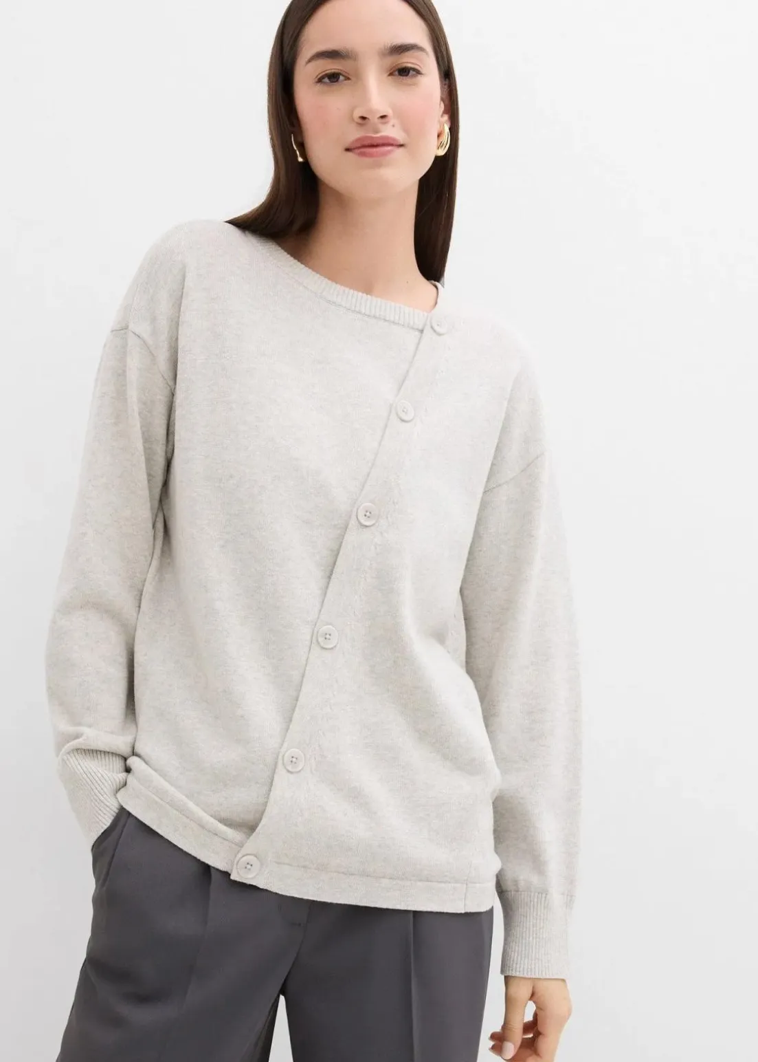 Langarm Strickpullover mit asymmetrischer Knopfleiste mit farblich passenden Knöpfen und gerippten Abschlüssen