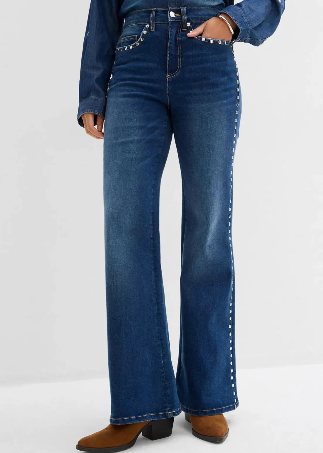 Flared-Jeans High Waist mit Nietenbesatz