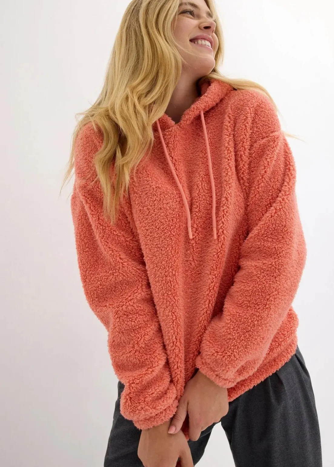 Lockeres Fleeceshirt mit Gummizug und Raffung am Saum