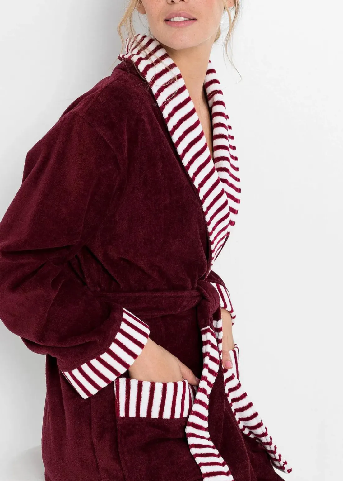 Weicher Frottee Bademantel mit Streifendetails