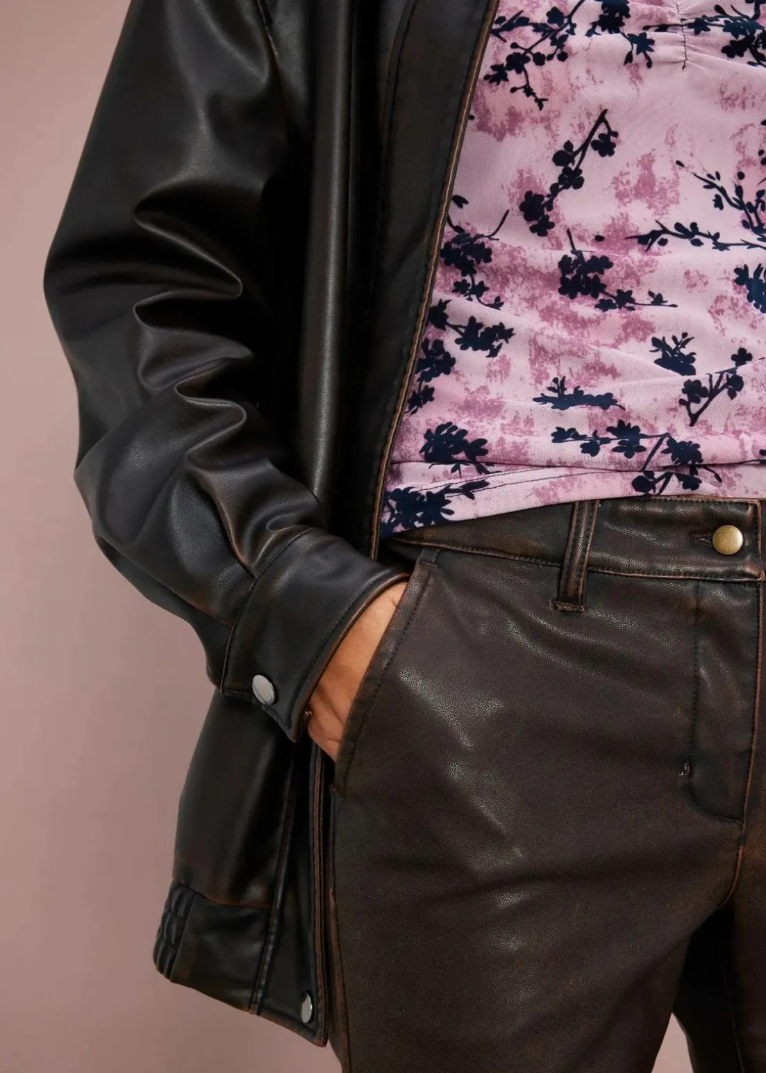 Modische Lederimitat-Hose mit geradem weitem Bein.