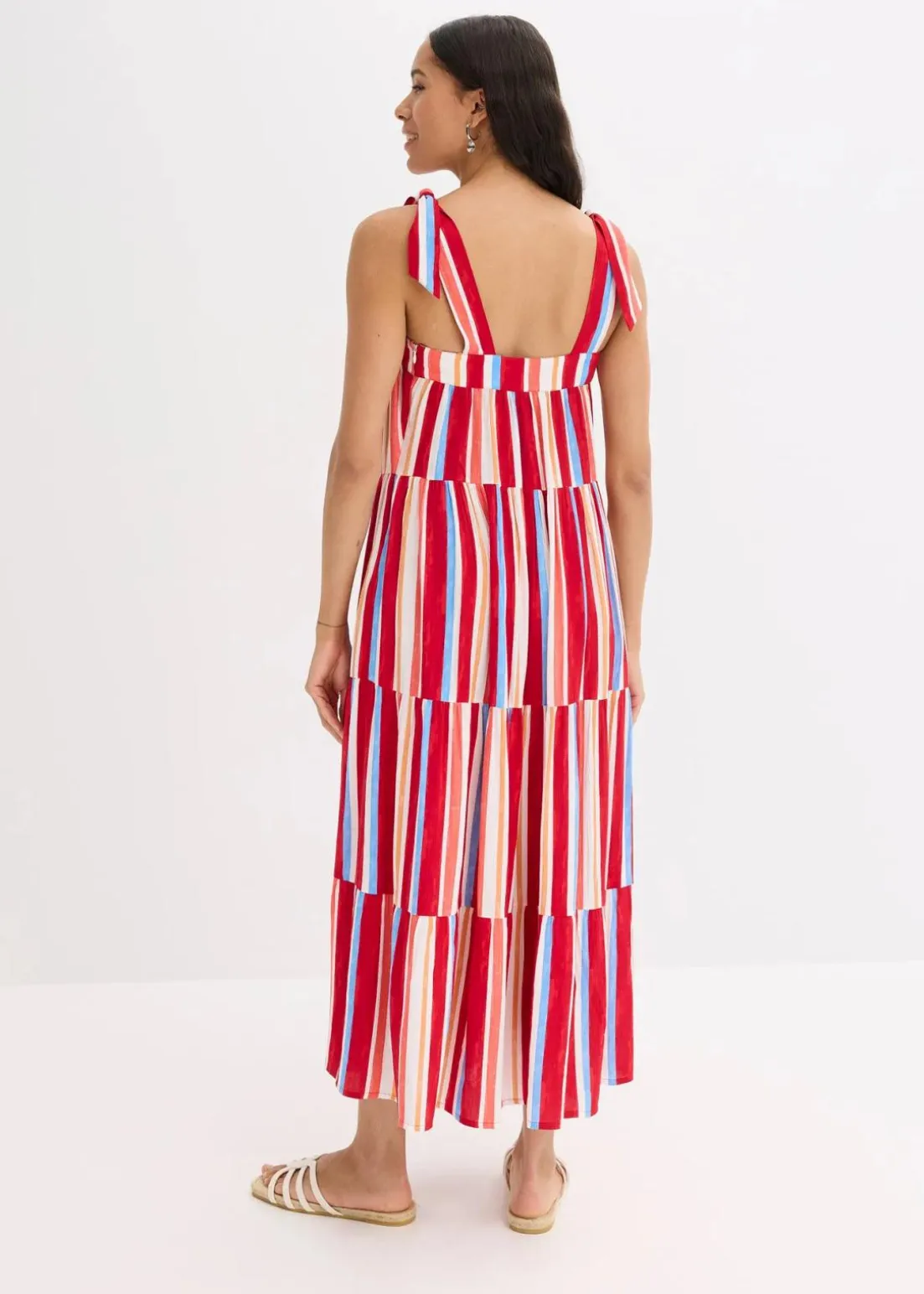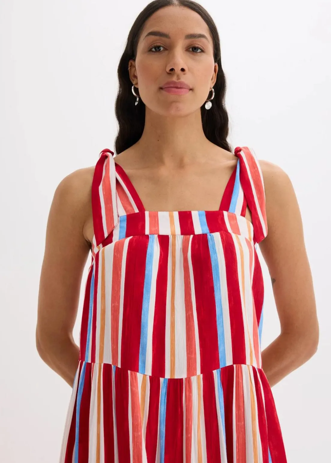 gestreiftes Trägerkleid in Maxilänge aus strukturierter Viskose mit geknoteten Trägern
