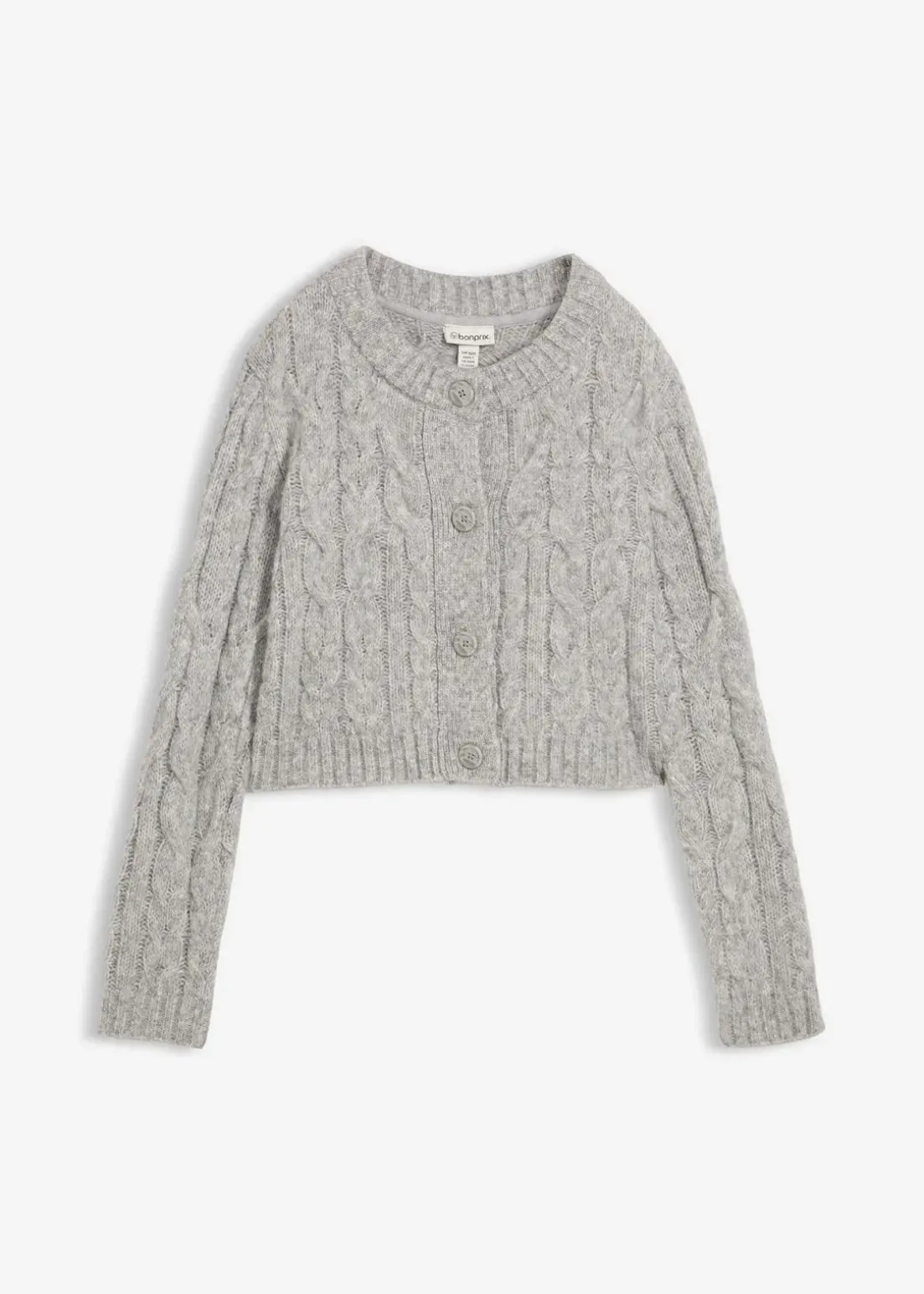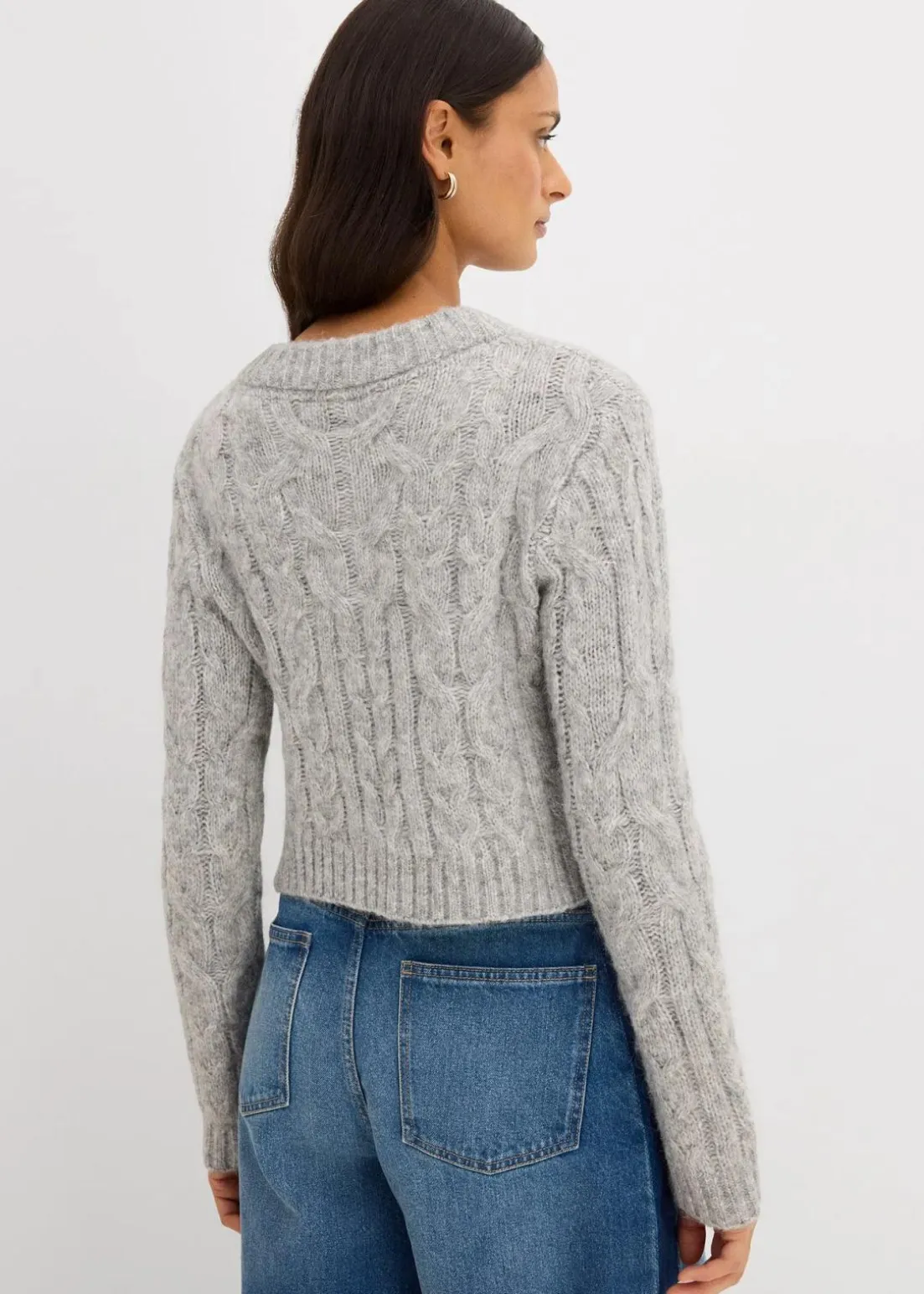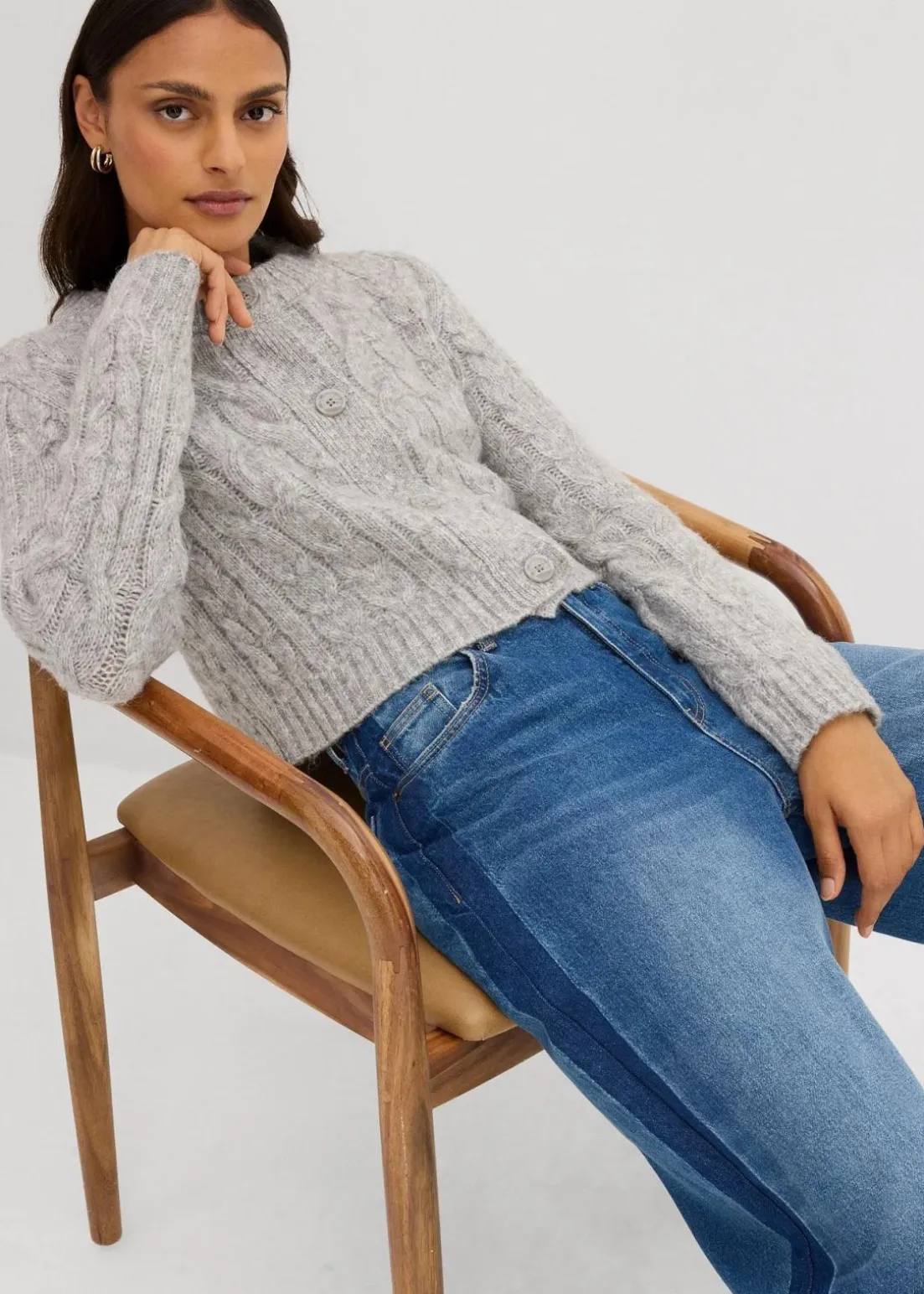 Lässige Grobstrickjacke mit Zopfmuster aus weichem Woll-Mix