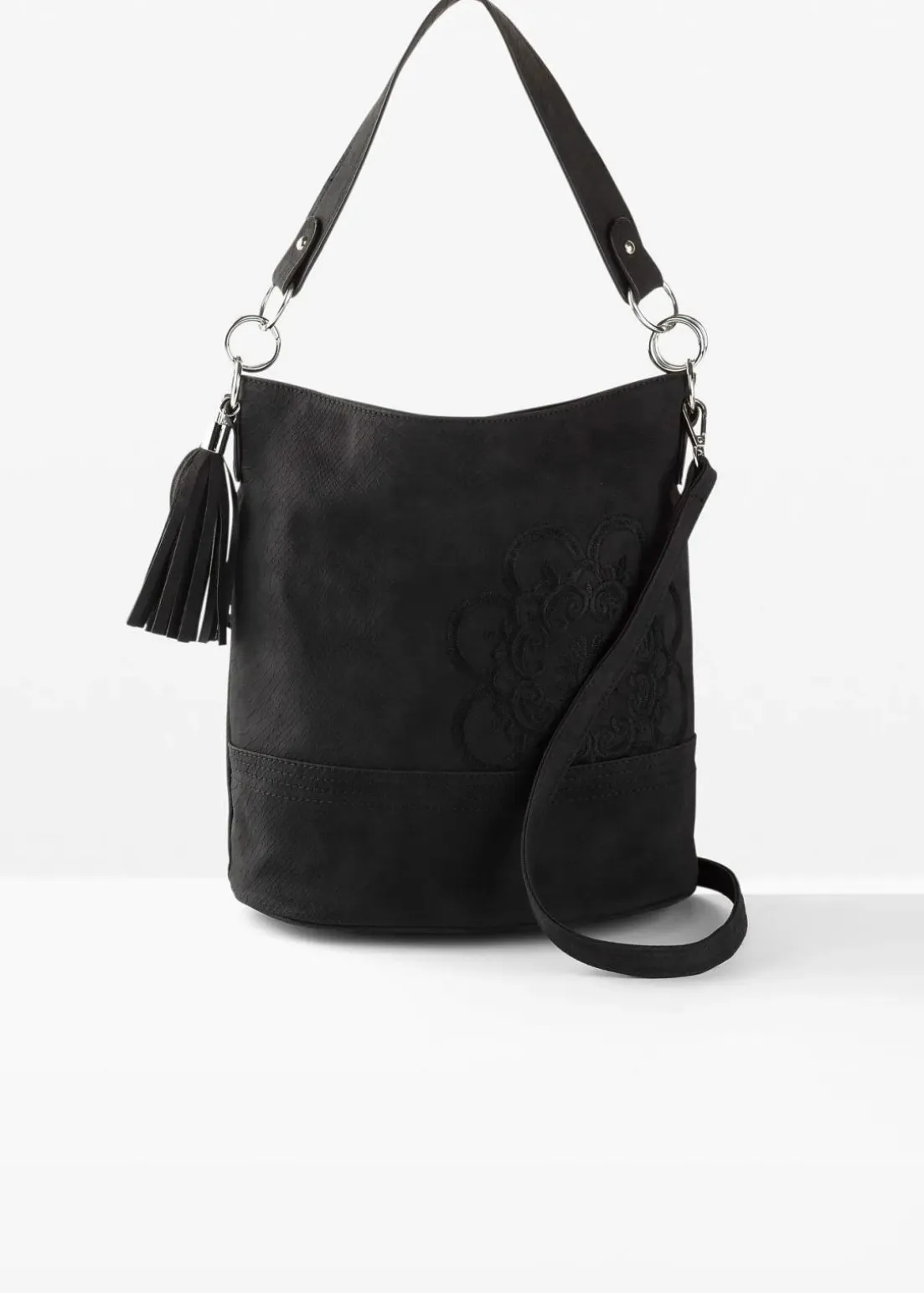 Modische Handtasche in Velourslederoptik mit Tassel