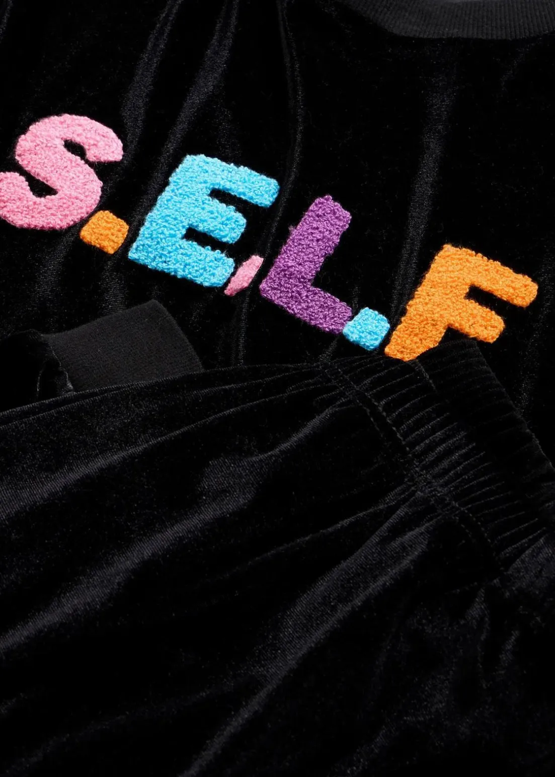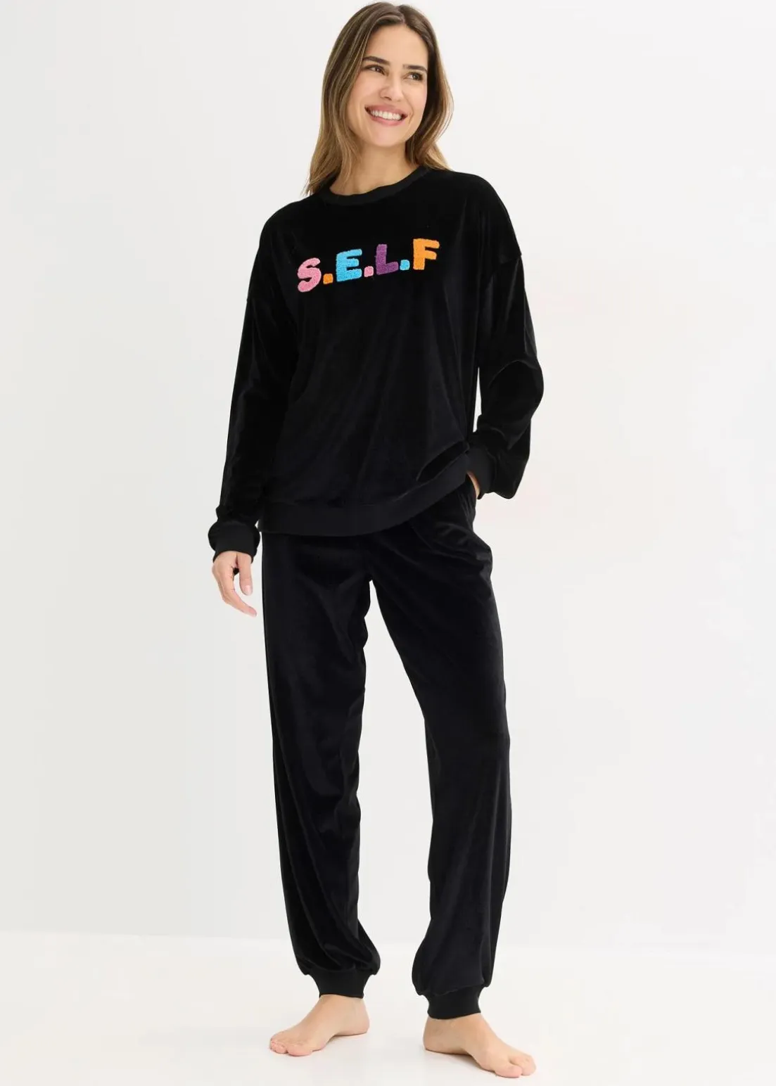 Gemütlicher Hausanzug mit einer schönen Applikation auf dem Shirt, sowie Rippbündchen und Eingriffstaschen an der Hose