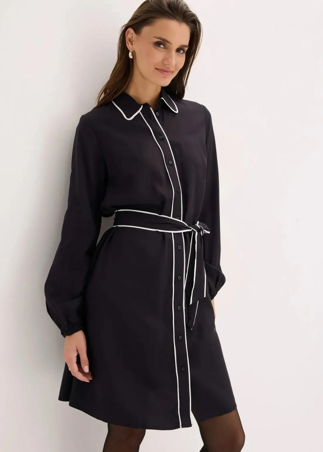 Kleid mit verdeckter Knopfleiste und Paspellierung