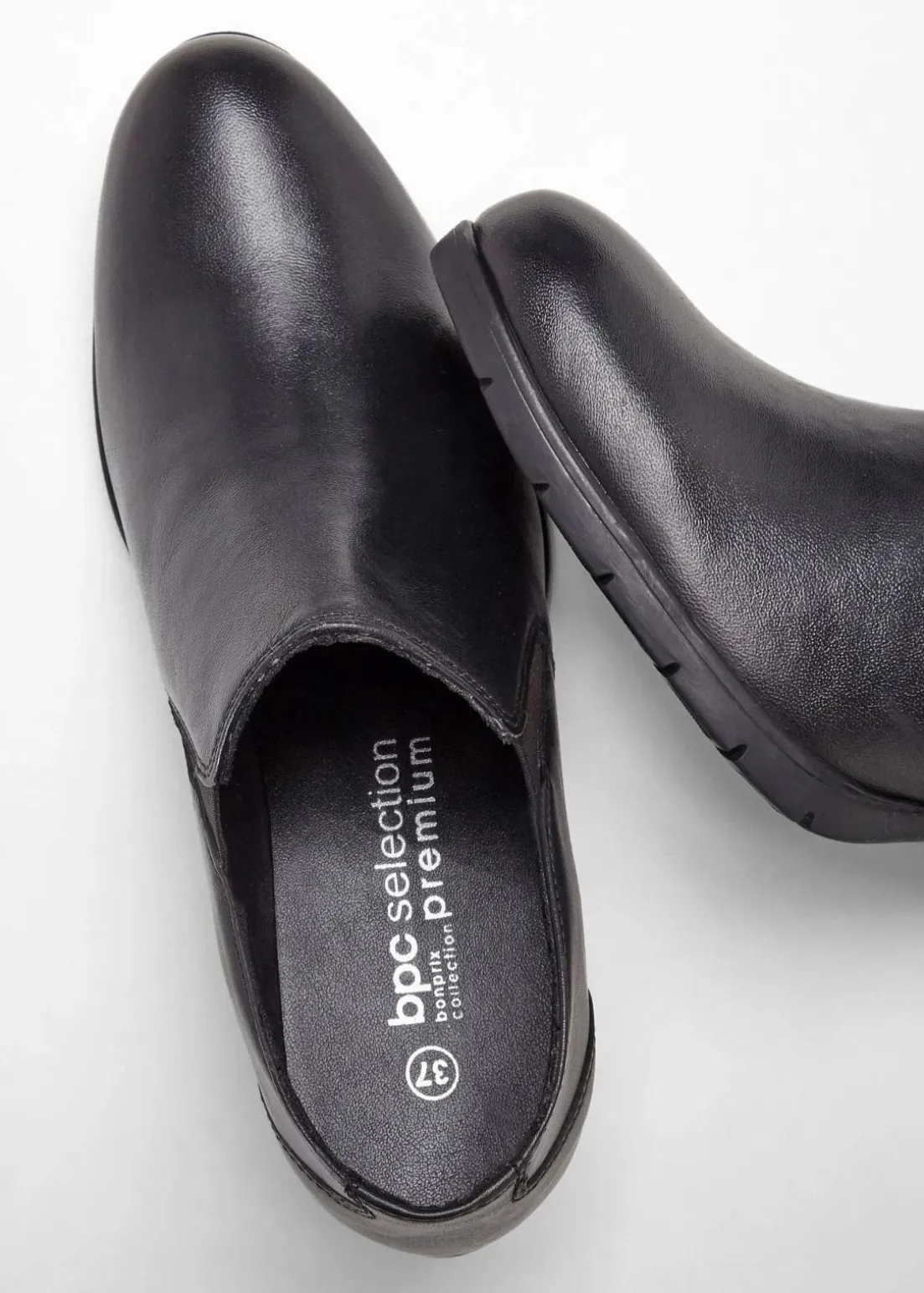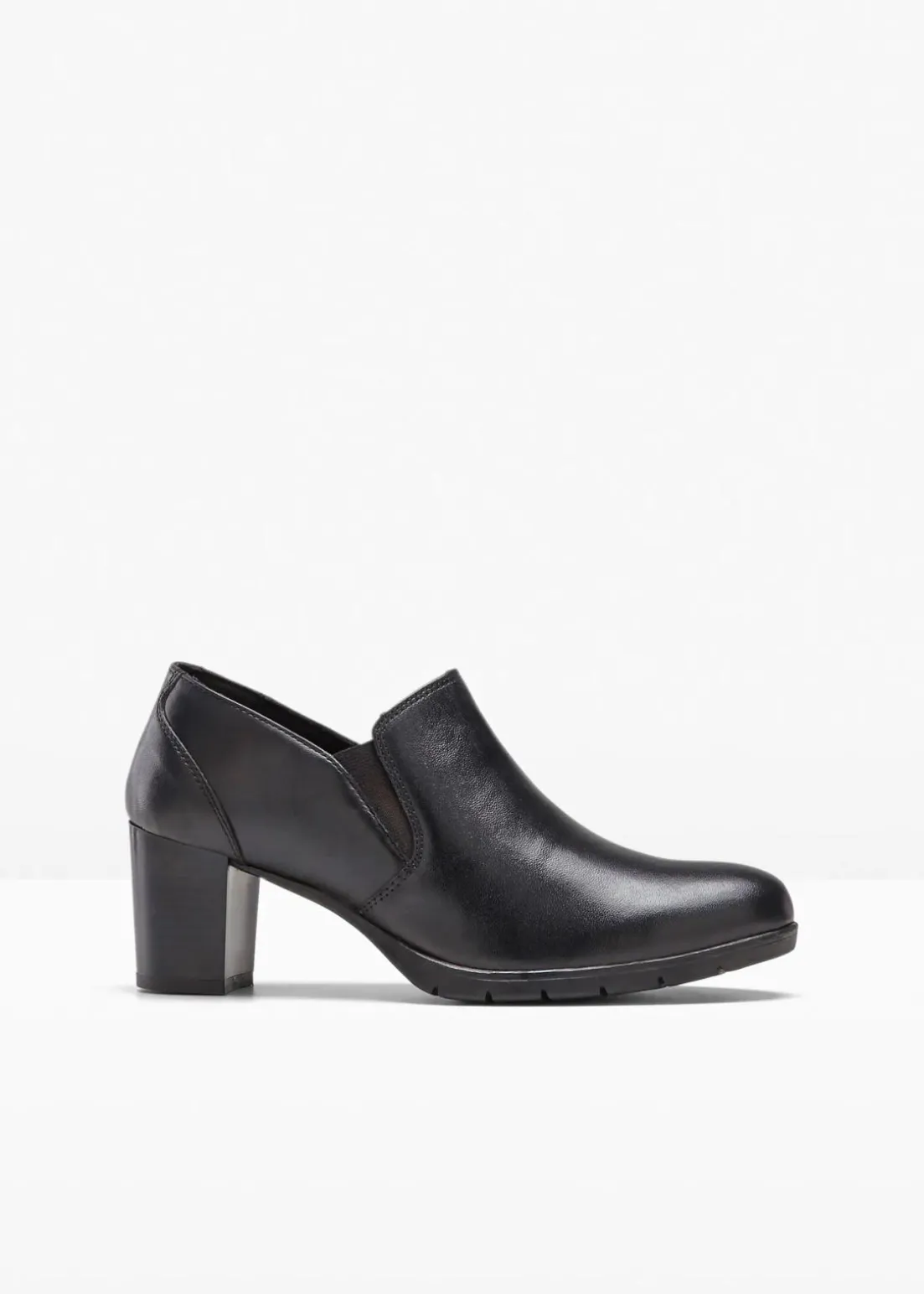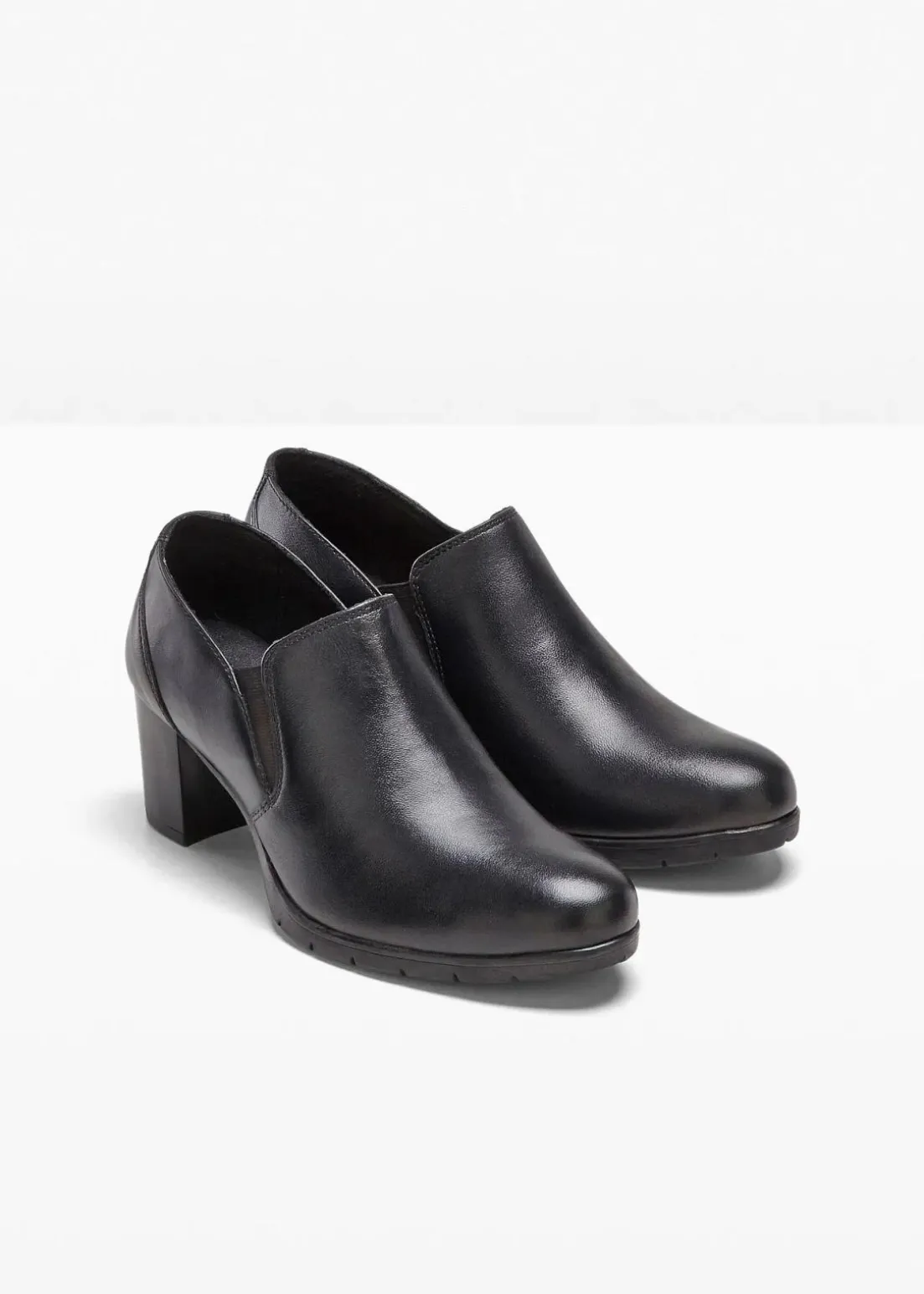 Klassischer Hochfrontpumps aus Leder mit Elastikeinsatz