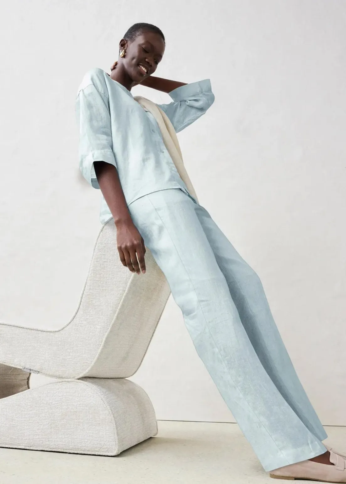 hochwertige weite Hose aus reinem Leinen
