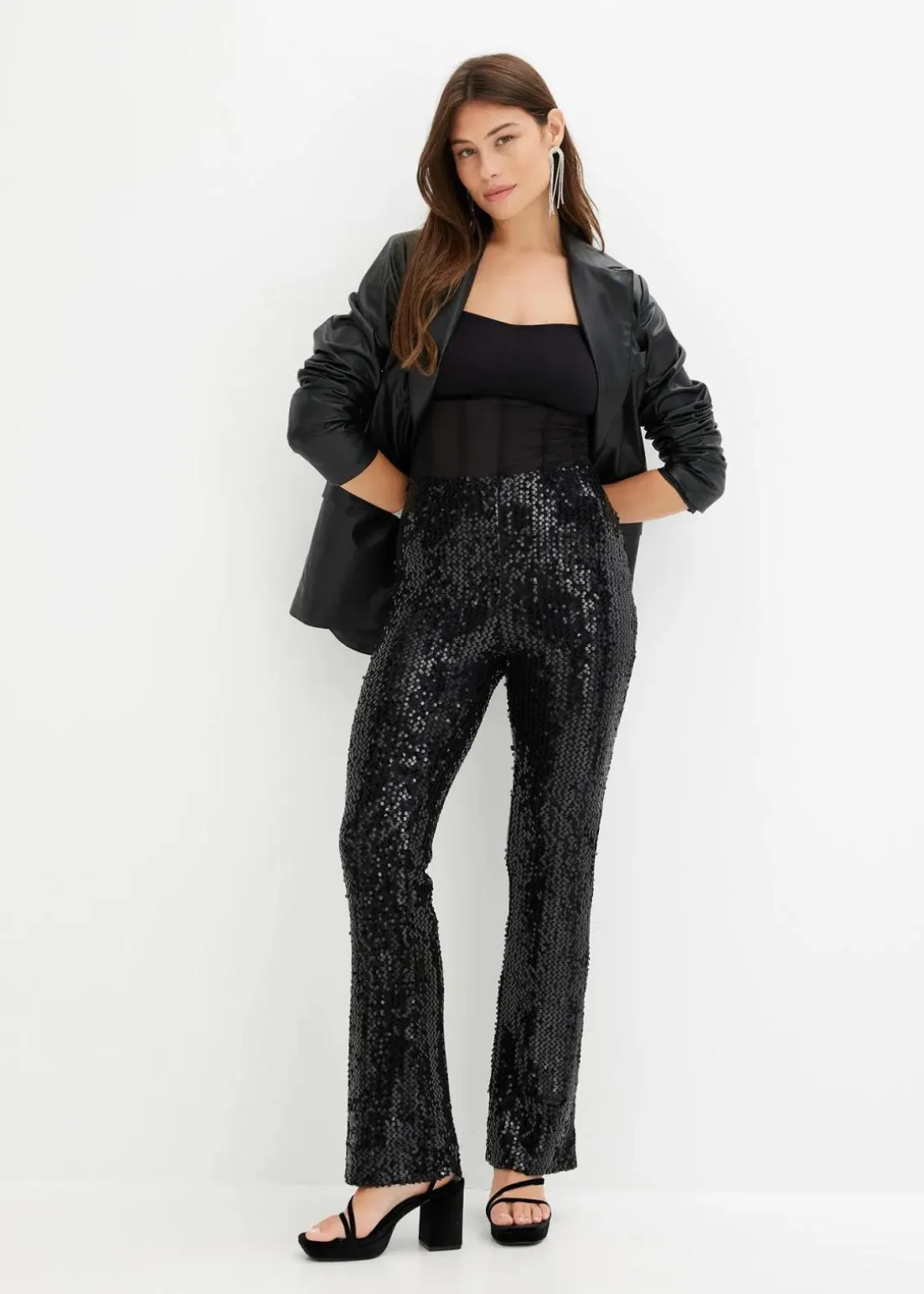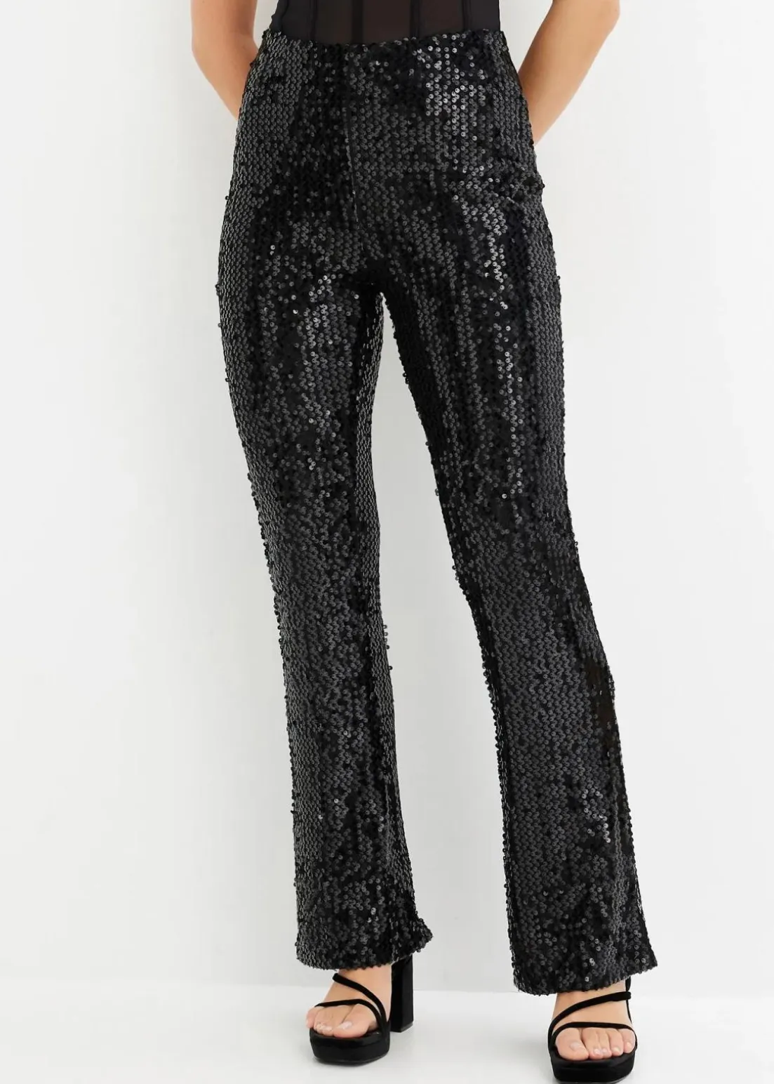 Modern und feminin: Lange Pailetten-Hose mit leichtem Schlag