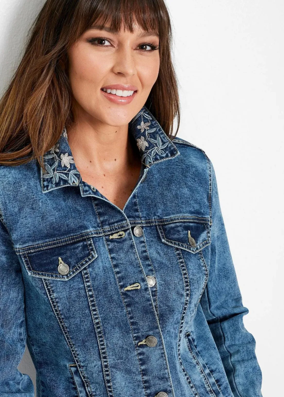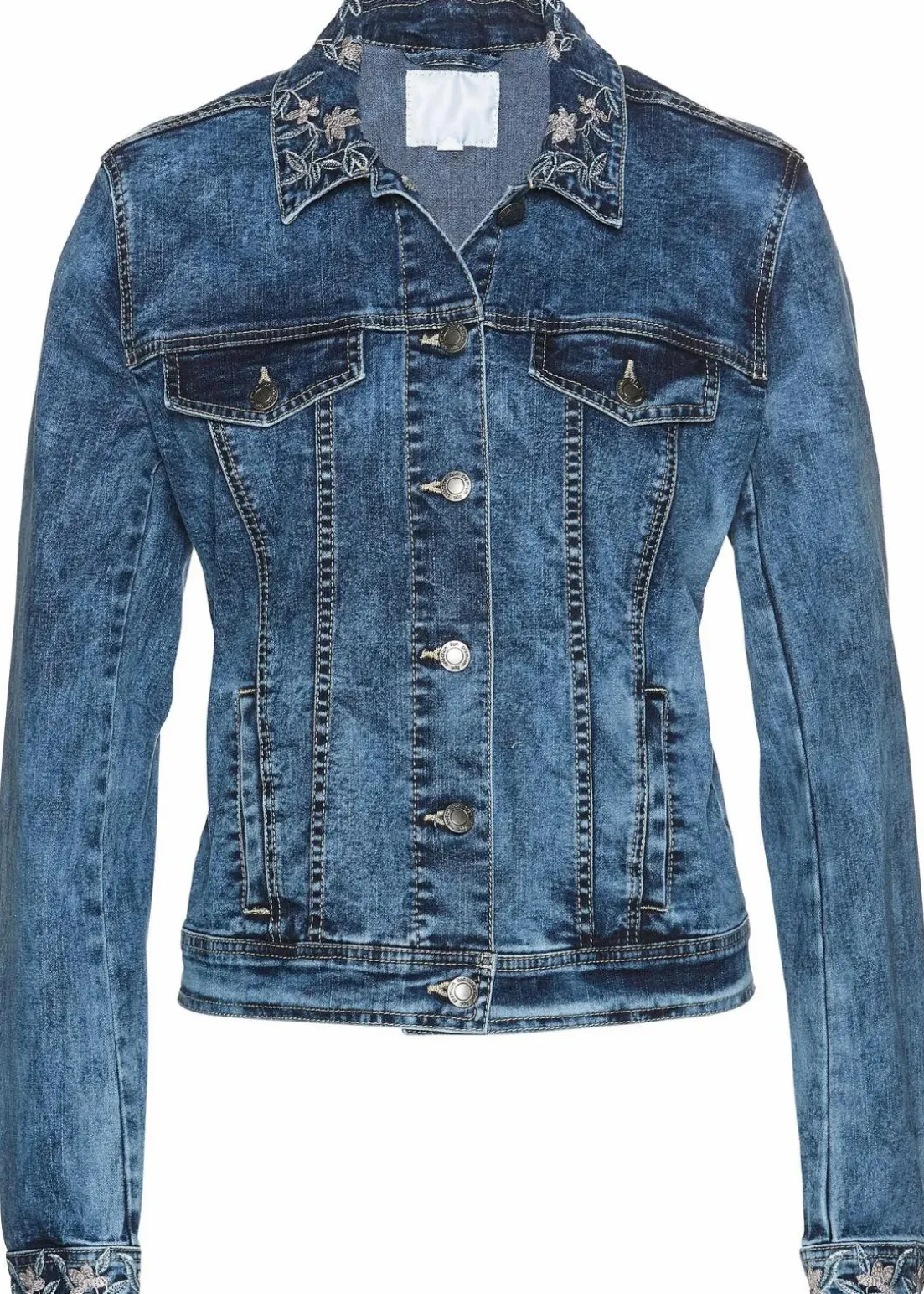 moderne verspielte Jeansjacke mit Blumenstickerei von Premium
