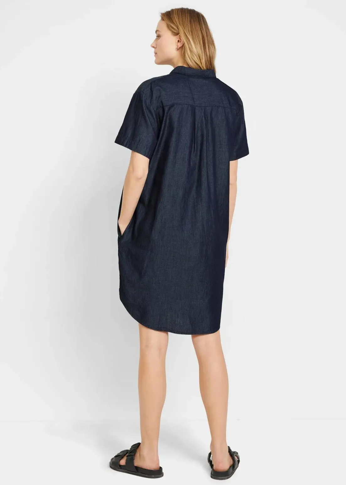 Sommerliches Jeanskleid mit kurzen Ärmeln.