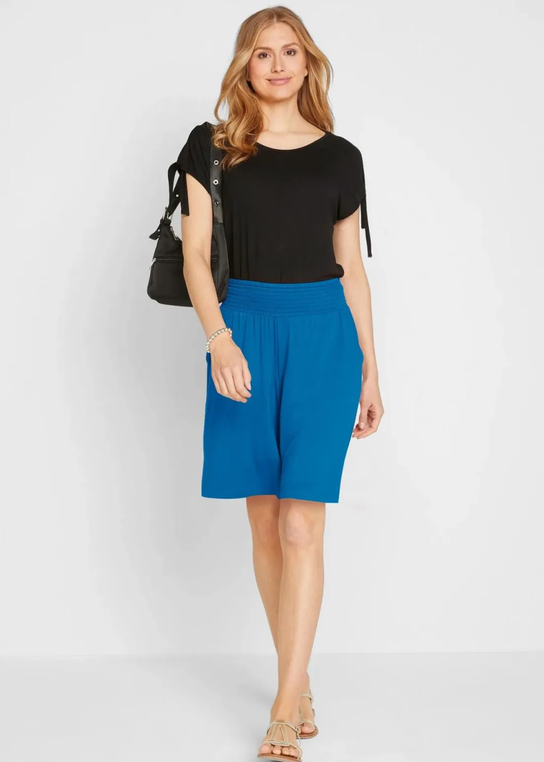 Figurumspielende Jersey-Bermuda mit breitem Bequembund