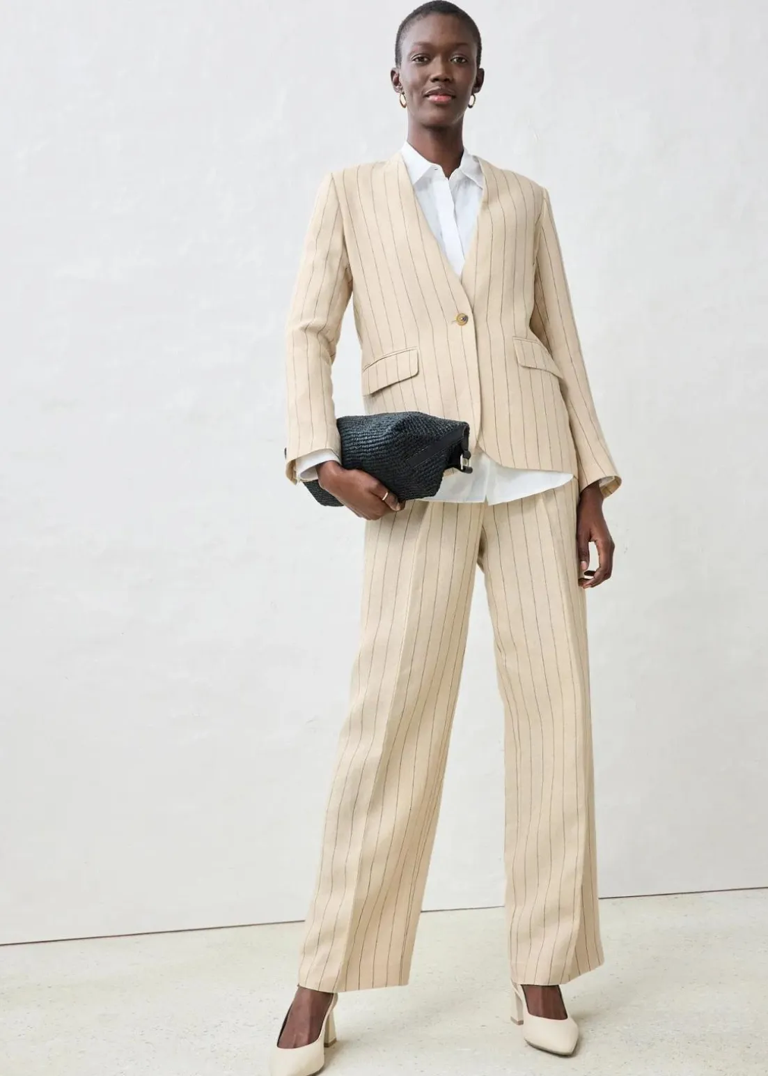 charmanter Kragenloser Blazer aus reinem Leinen