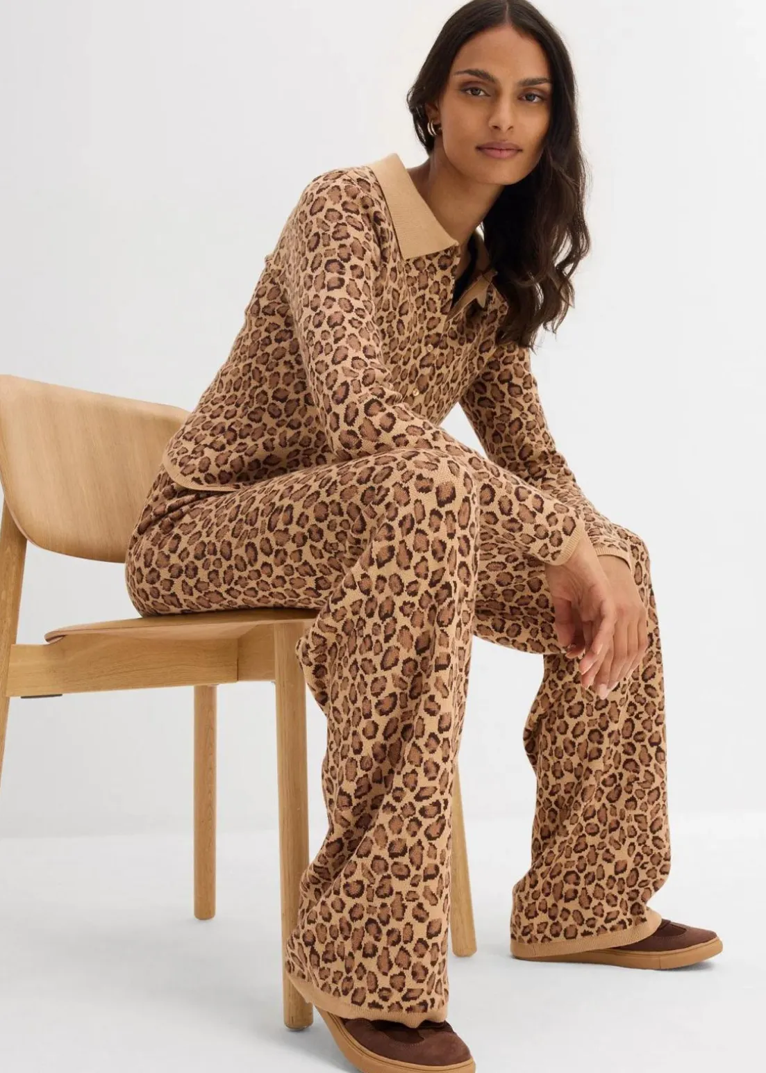 Kurze Feinstrickjacke mit Leomuster