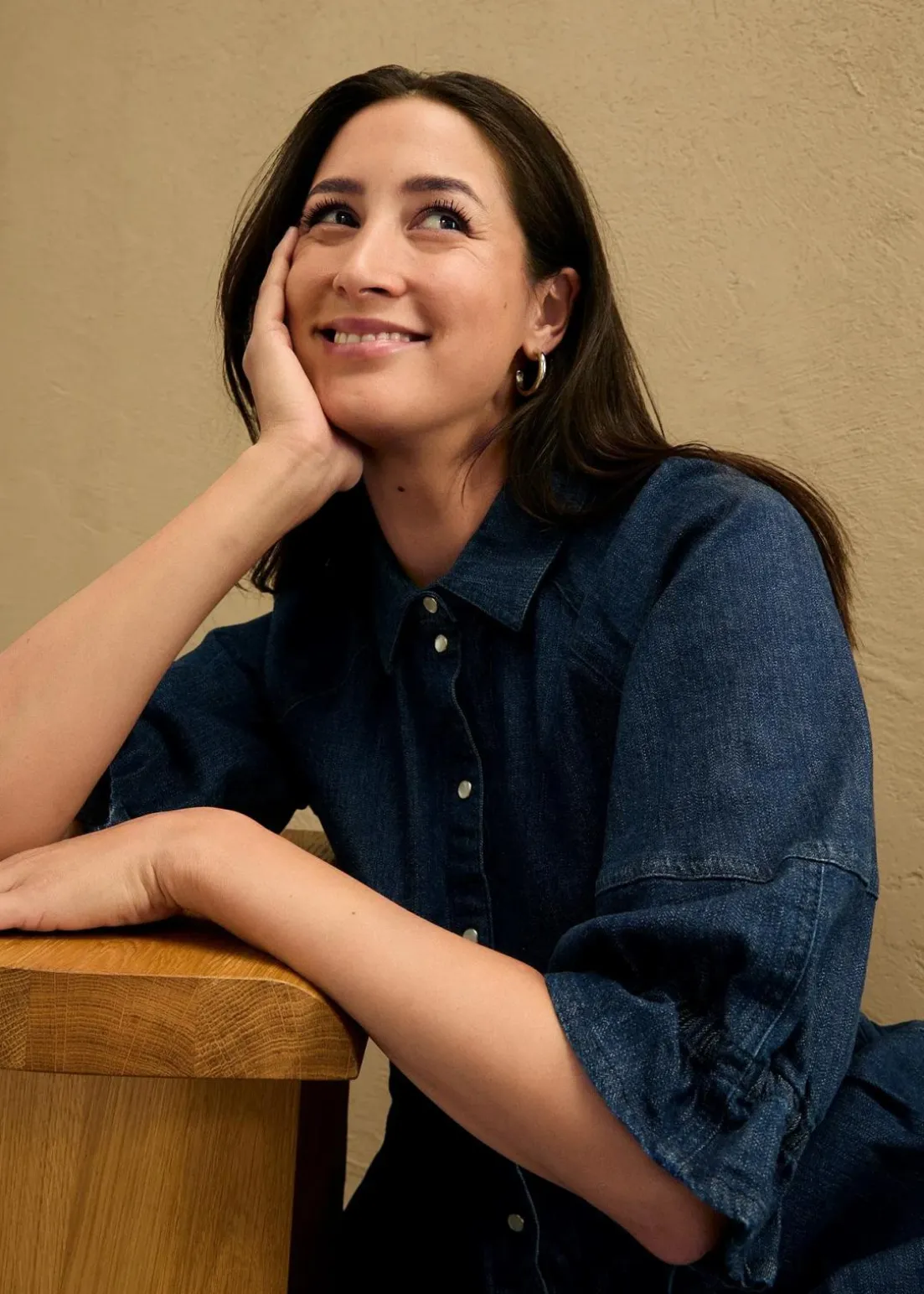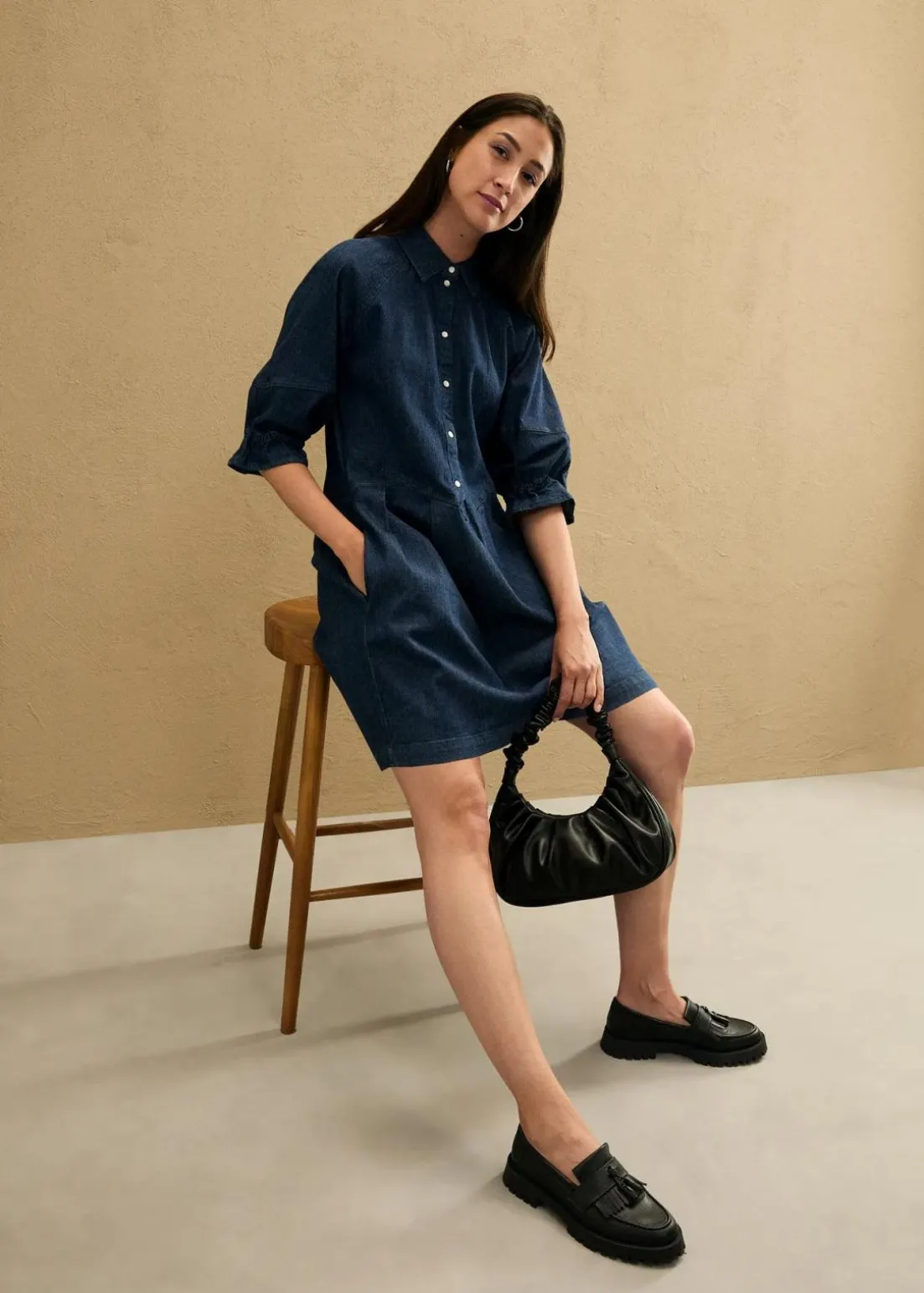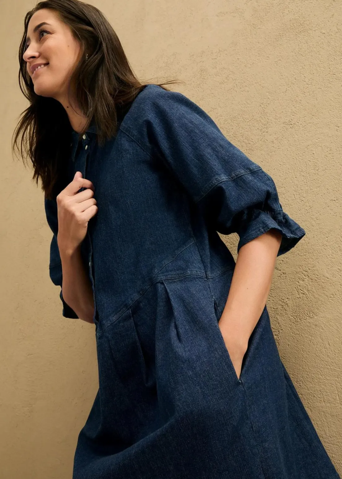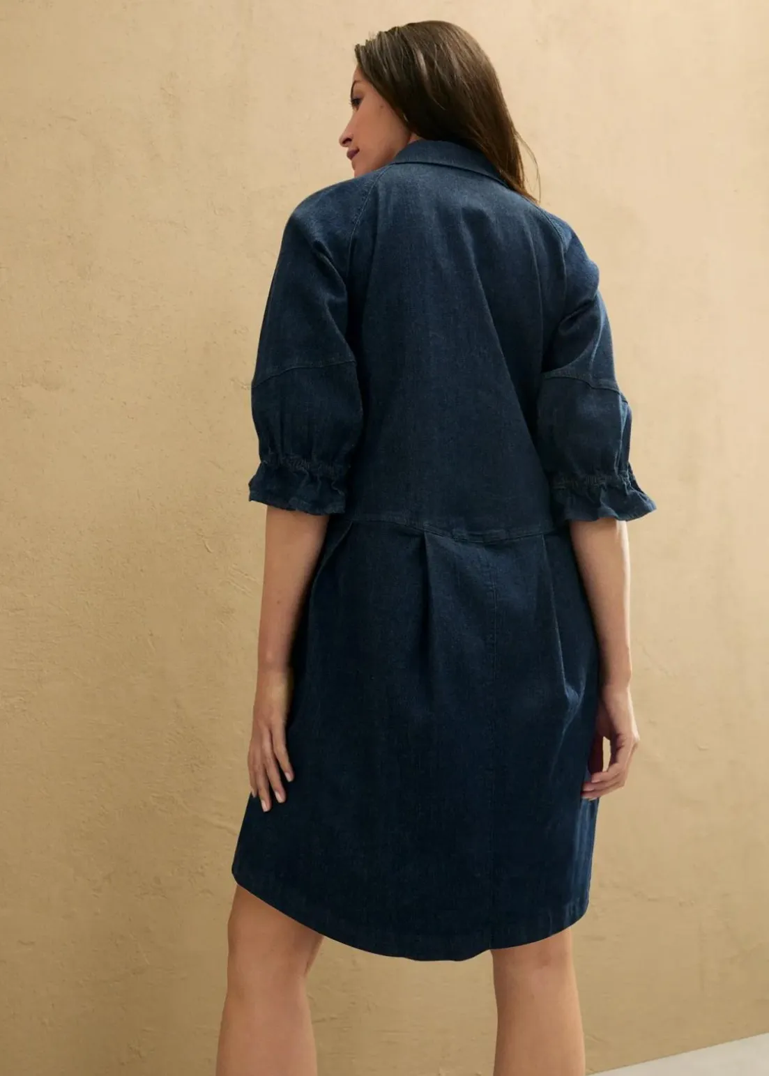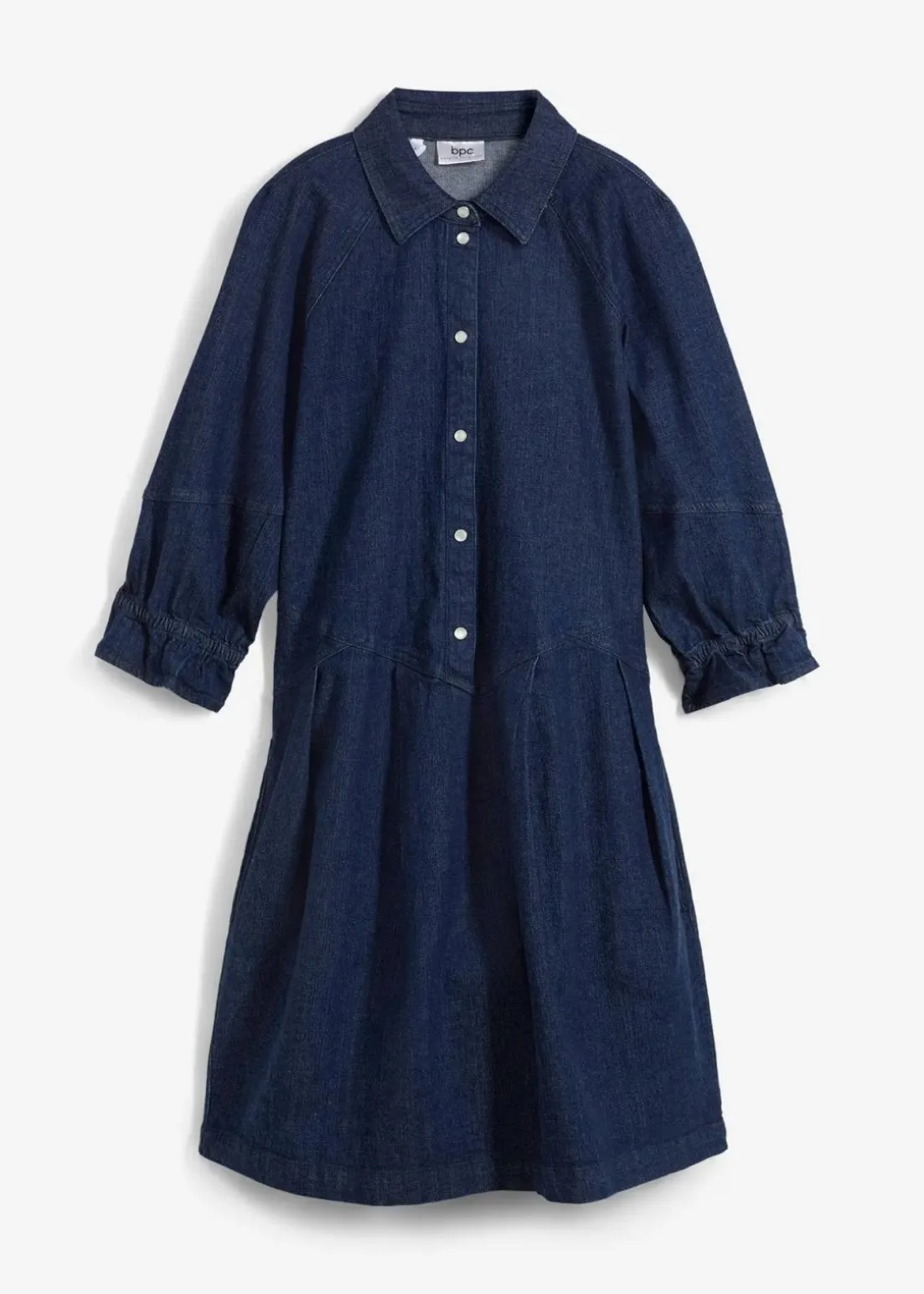 A-Linien Kleid in formstabiler Denim-Qualität und schönen Pufferärmeln