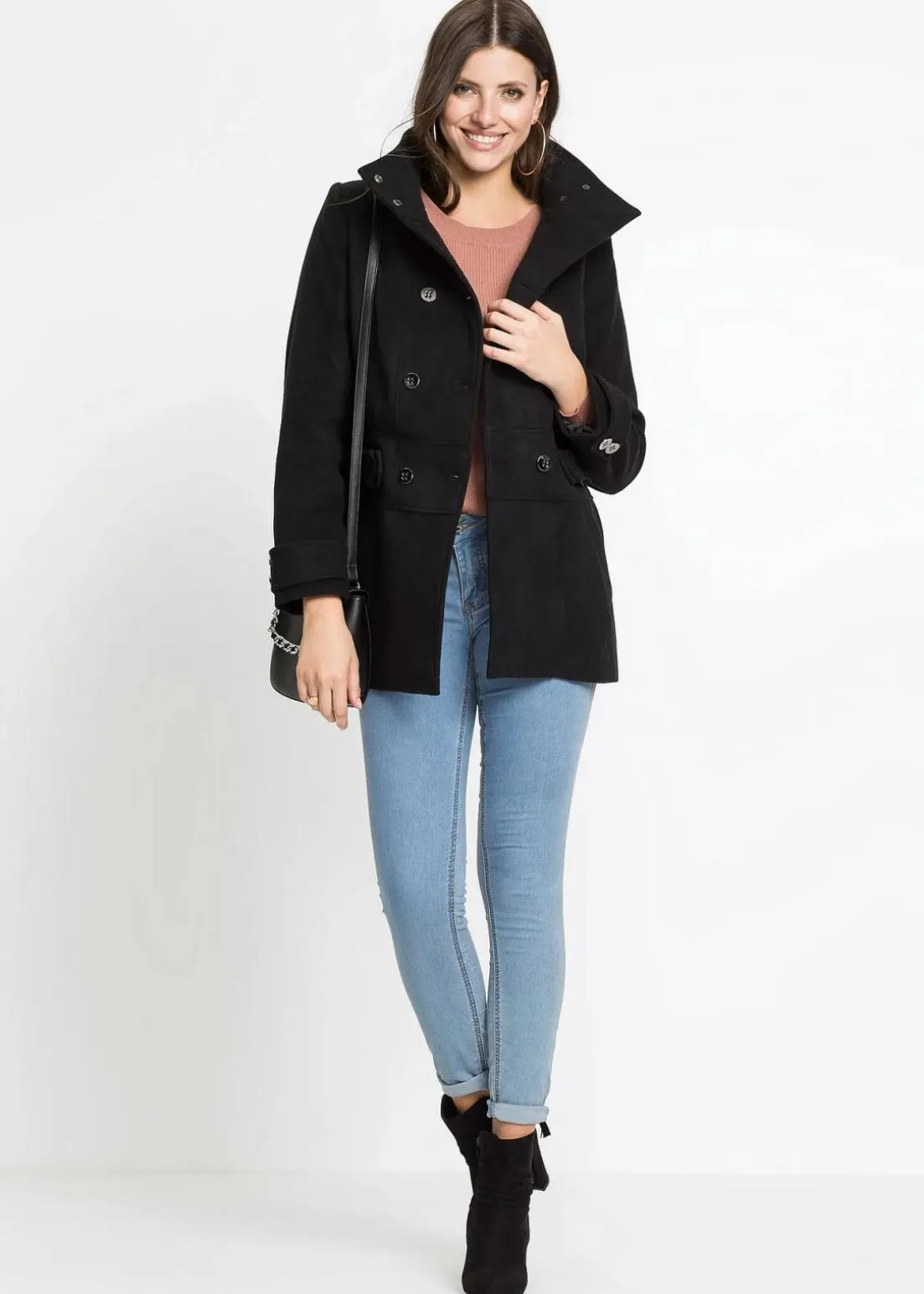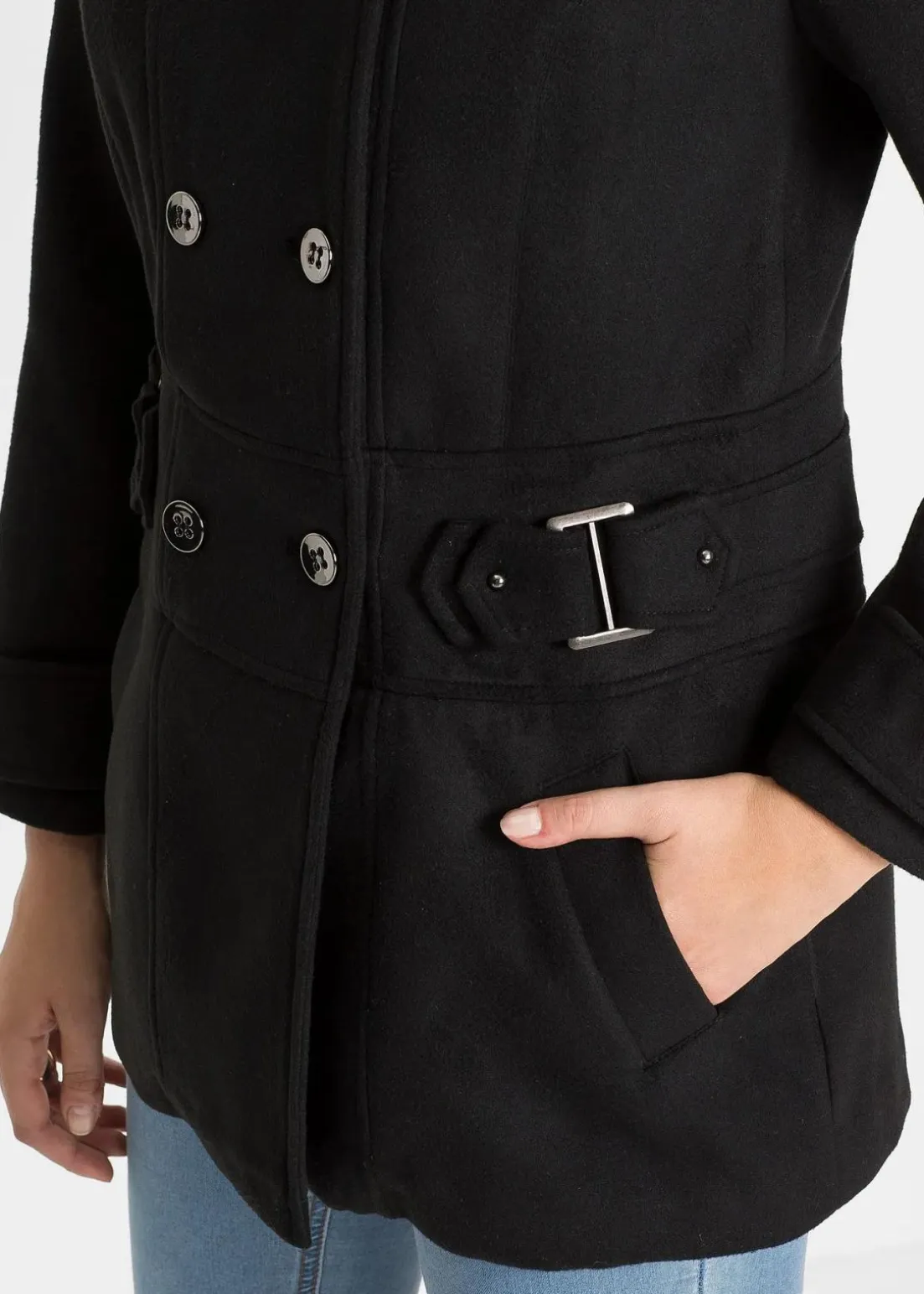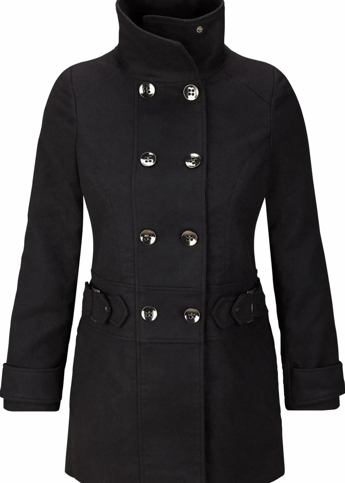Modischer Kurzmantel mit hohem Kragen und doppelreihigen Knöpfen in Petite-Größe.