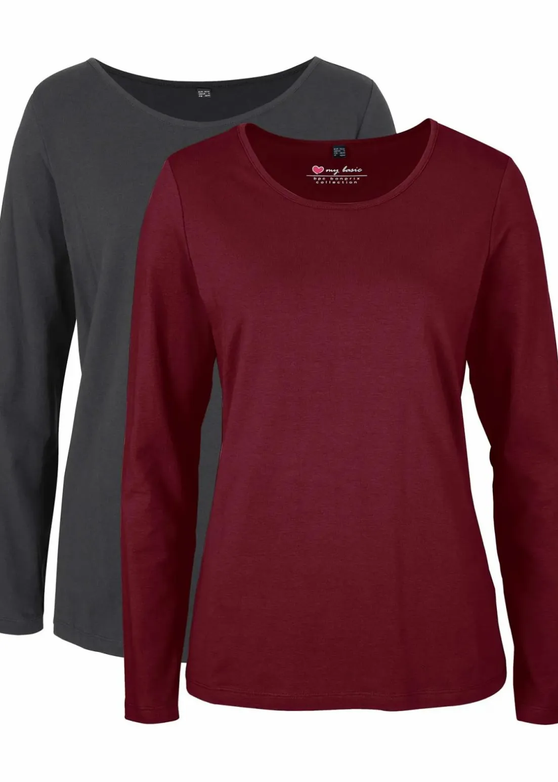 Basic Stretch-Shirt im Doppelpack, langärmelig