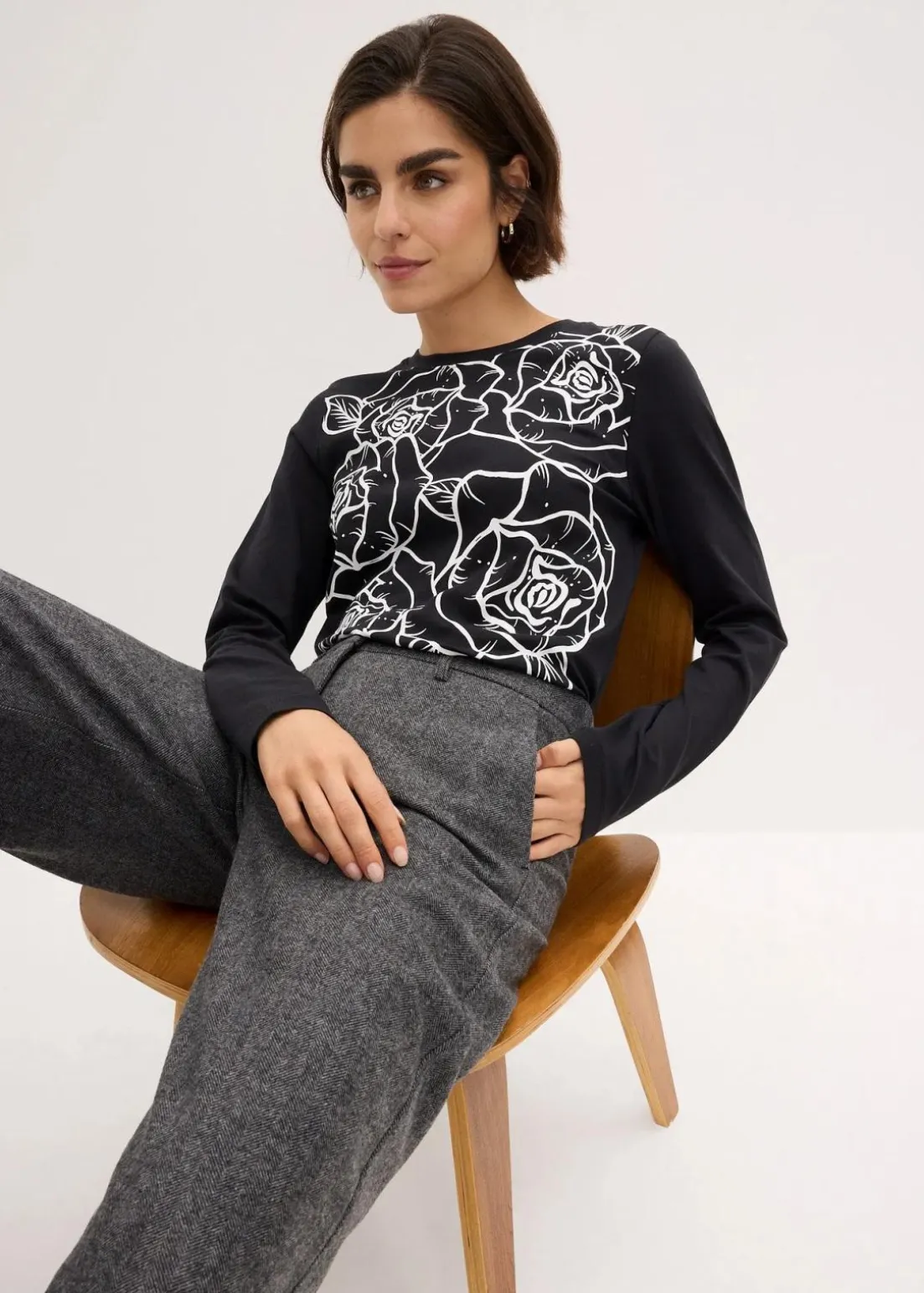 feminines Langarmshirt mit plakativem Rosendruck